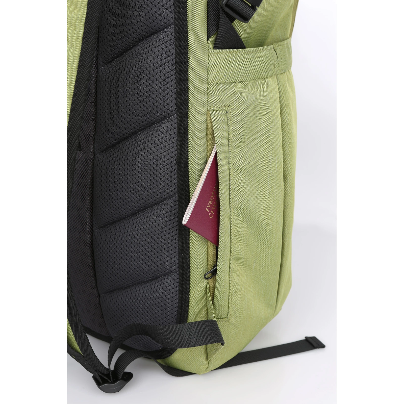 Hergestellt aus strapazierfähigem Recyclingmaterial 600D recyceltes Polyester (RPET) mit wasserabweisender Beschichtung. Rückensystem aus geformtem EVA mit Formgedächtnis und atmungsaktivem 3D-Mesh für hohen Tragekomfort.