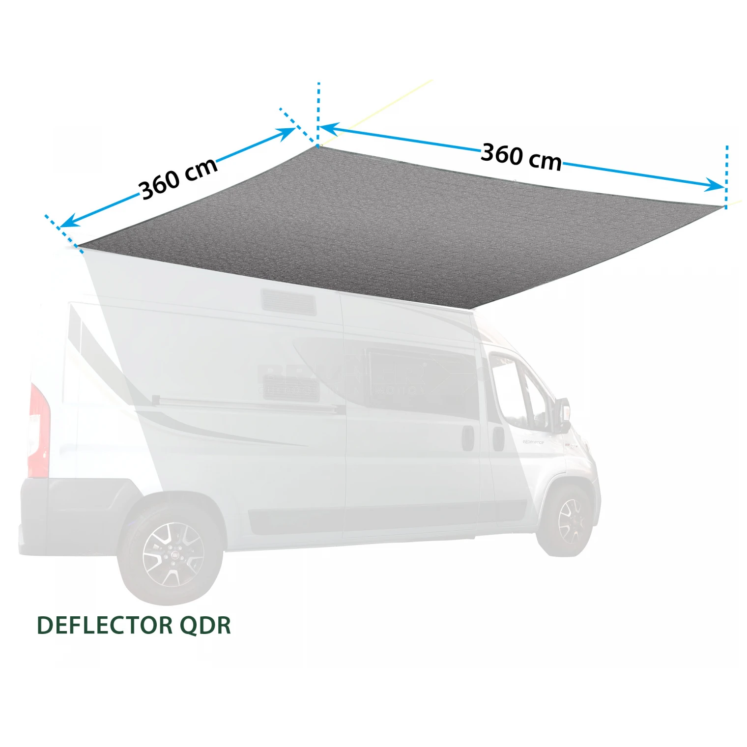 Der Deflector QDR 360-Unterstand von Brunner ist die ideale Wahl fürs Camping, egal ob Sie mit Wohnwagen, Wohnmobil oder Auto unterwegs sind. Der Unterstand schützt Sie vor der Sonne. Die Zelthülle besteht aus 100 % UV-beständigem Polyethylen. Die Anbindung an das Fahrzeug wird im Wesentlichen über eine 5/7 mm Zedernholzleistegelöst. Im Lieferumfang sind außerdem Spannschnüre, Heringe und eine praktische Verpackung enthalten, die den Transport und die Lagerung erleichtert.