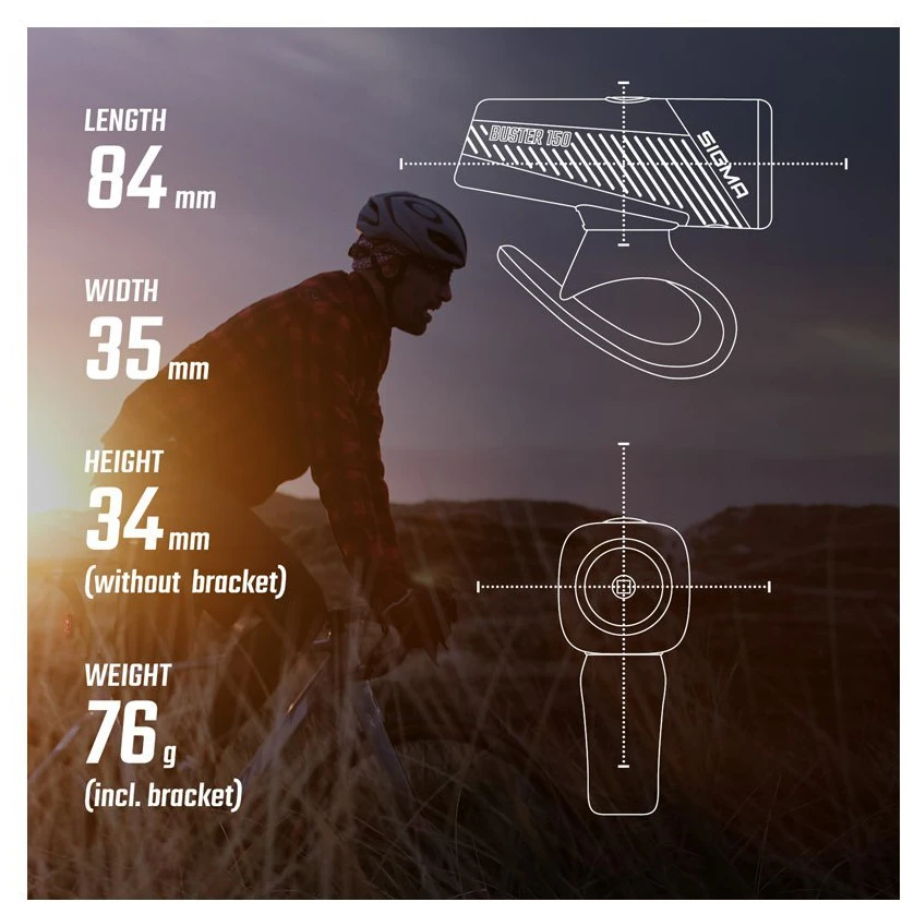 Das Buster 150 der Marke Sigma ist ein praktisches Fahrrad-Frontlicht, das für perfekte Straßenbeleuchtung, perfekte Sichtbarkeit und vor allem Sicherheit sorgt.