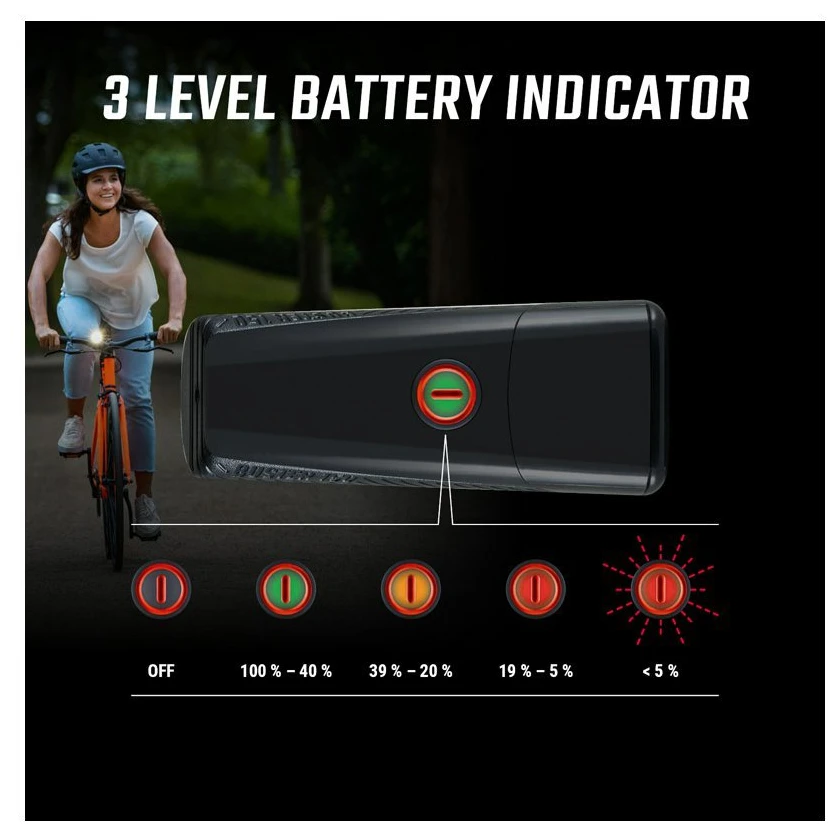 Das Buster 150 bietet 5 Beleuchtungsmodi, die bequem über voreingestellte Profile ausgewählt werden können. Das Licht wird weiterhin fesseln wiederaufladbarer Li-Ion-Akku, den Sie über das mitgelieferte USB-C-Kabel aufladen können, Batteriestatusanzeige, 360°-Halterung mit Schnellverschlusssystem , Memory-Funktion und erhöhte Widerstandsfähigkeit mit IPX4-Zertifizierung, die gewährleistet Schutz gegen Spritzwasser aus allen Richtungen. Somit können Sie das Licht auch bei schlechtem Wetter nutzen. Für die Leuchte Buster 150 ist ein universeller Helmhalter erhältlich (nicht im Lieferumfang enthalten).