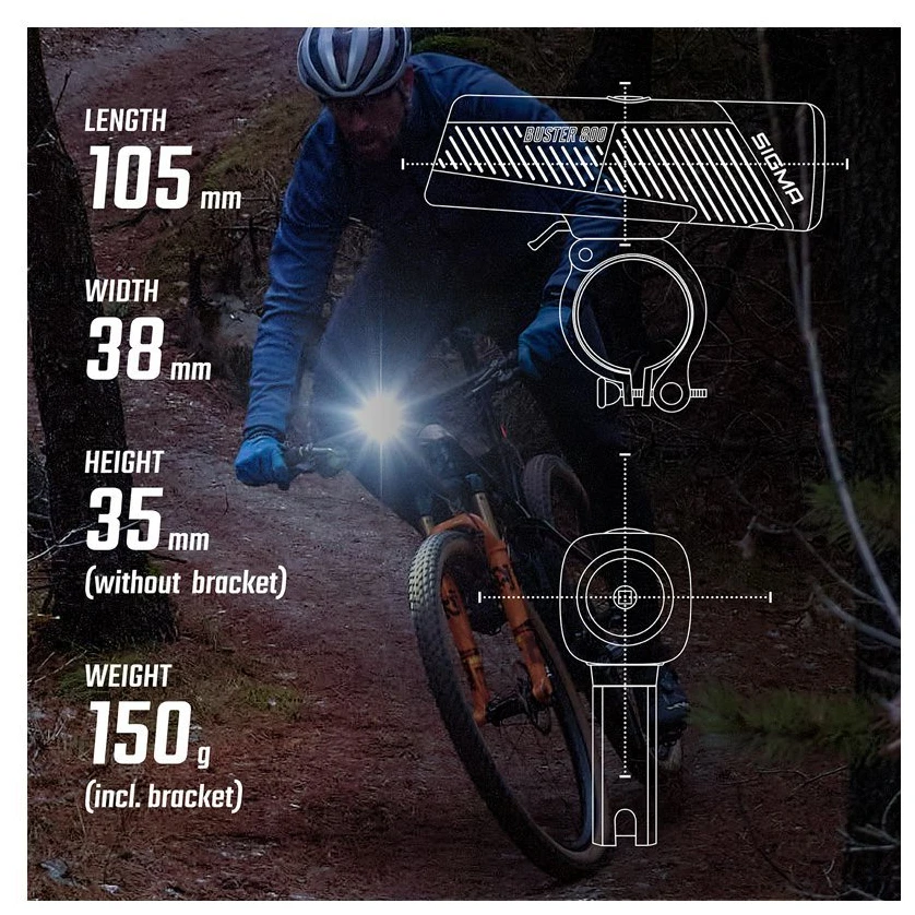 Ein kleines, leichtes und dennoch leistungsstarkes Fahrrad-Frontlichtmit einem Gewicht von nur 150 Gramm ist das Buster 800 der Marke Sigma. Mit einer Helligkeit von 800 Lumen bietet Ihnen der Buster eine hervorragende Lichtleistung und ist der perfekte Begleiter für Ihre Fahrten im Dunkeln. Sie bieten eine Reichweite von bis zu 120 Metern, sodass jede Straße ausreichend beleuchtet ist. Zur perfekten Sicht trägt zusätzlich das Positionslicht bei. SIGMA Light Guide, der perfekte seitliche Sichtbarkeit und leistungsstarke CREE LED -Dioden garantiert.