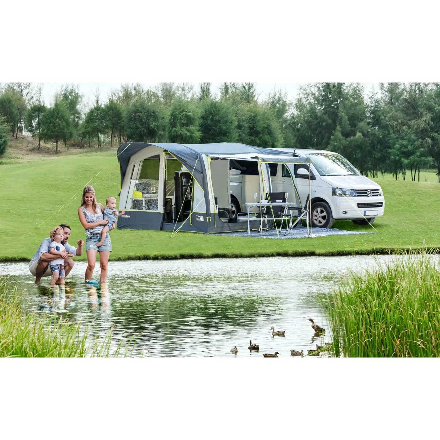 Trails Lc der Marke Brunner ist ein stylisches aufblasbares Vorzelt, das Sie freistehend stehen lassen können, während Sie zu einem Abenteuer aufbrechen.