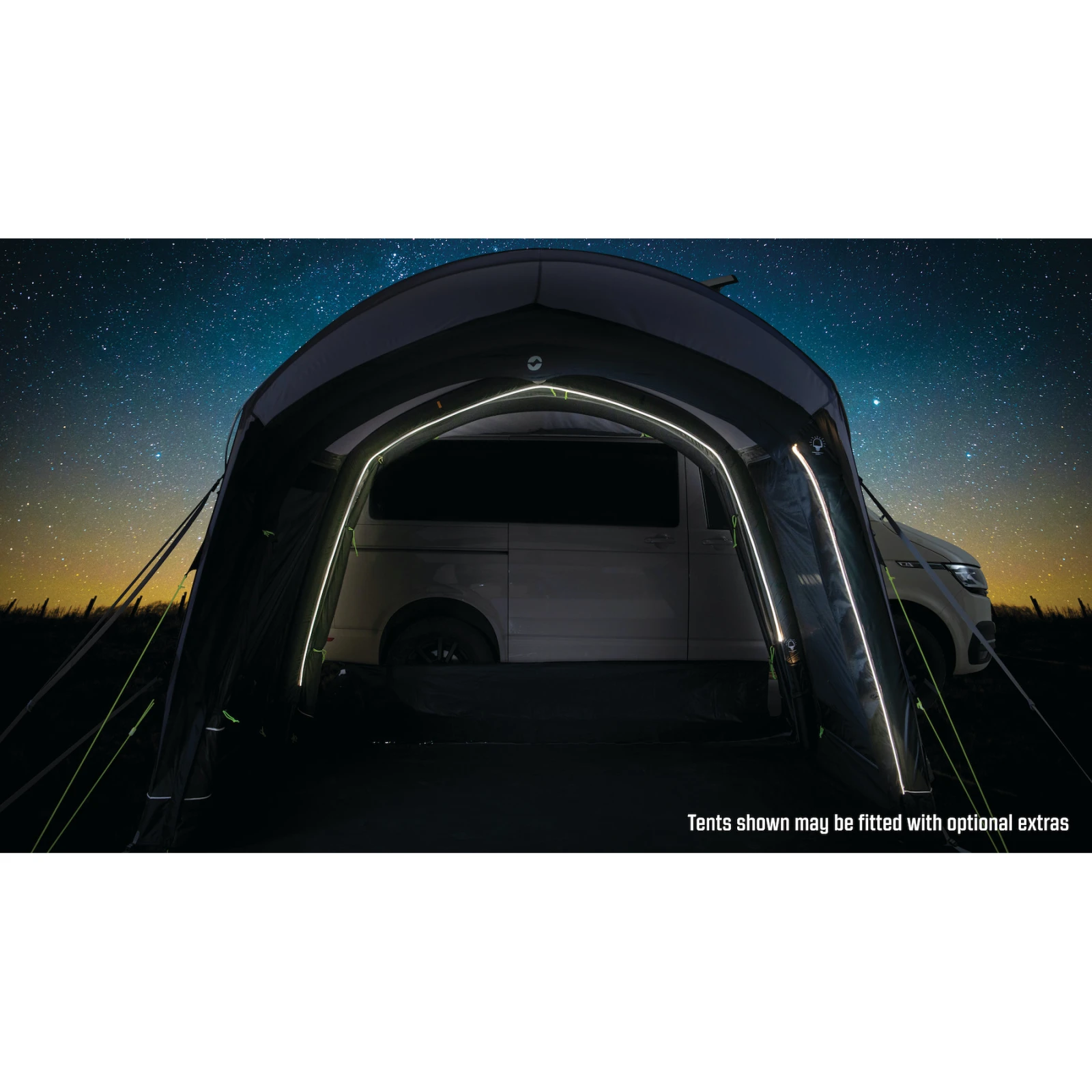 Das Vorzelt Outwell Maryville 260SA Flex mit aufblasbarer Struktur, breitem Panoramaeingang und breitem Vordach lässt sich einfach an Ihrem Wohnmobil befestigen.