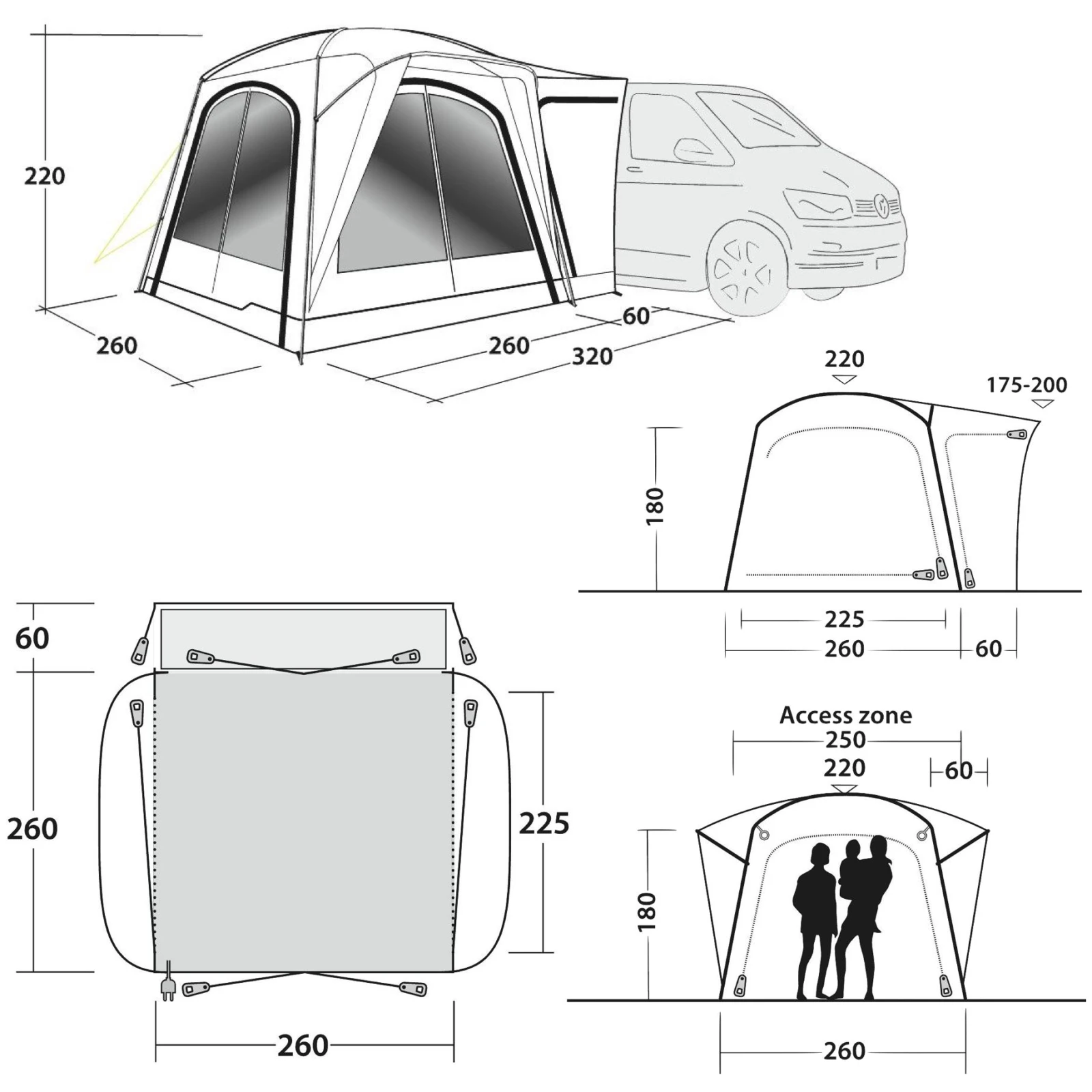 Das Milestone Lux-Vorzelt ist ein geräumiges Zelt für ein Wohnmobil oder einen Van mit einer Höhe von 175–200 cm, das zur Cruising-Kollektion der dänischen Marke Outwellgehört. Die Struktur besteht aus robusten und langlebigen Duratec-Glasfaserstäben mit Wind Stabilizer System. Das Markisendach besteht aus wasserdichtem Outtex® 3000 Select-Polyester mit verschweißten Nähten und der Fire Retardant-Technologie, die die Folgen eines Brandes unterdrückt und beseitigt. Ein speziell verklebter Polyethylenboden schützt Sie vor Nässe und Kälte vom Boden.