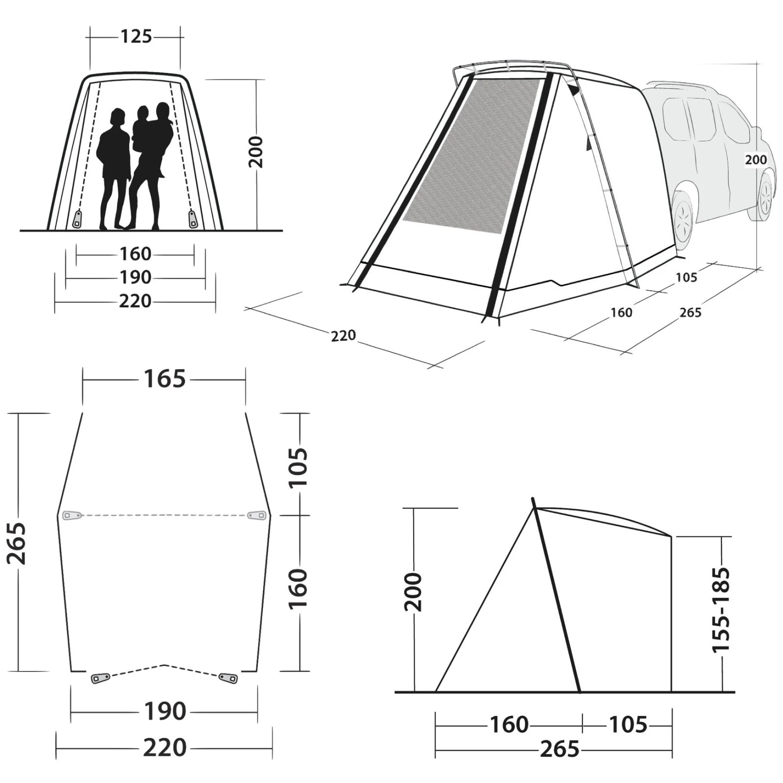 Das leichte, geräumige und vielseitige Sandcrest S Vorzelt der Marke Outwell ist die perfekte Wahl für Reisen mit einem Van.