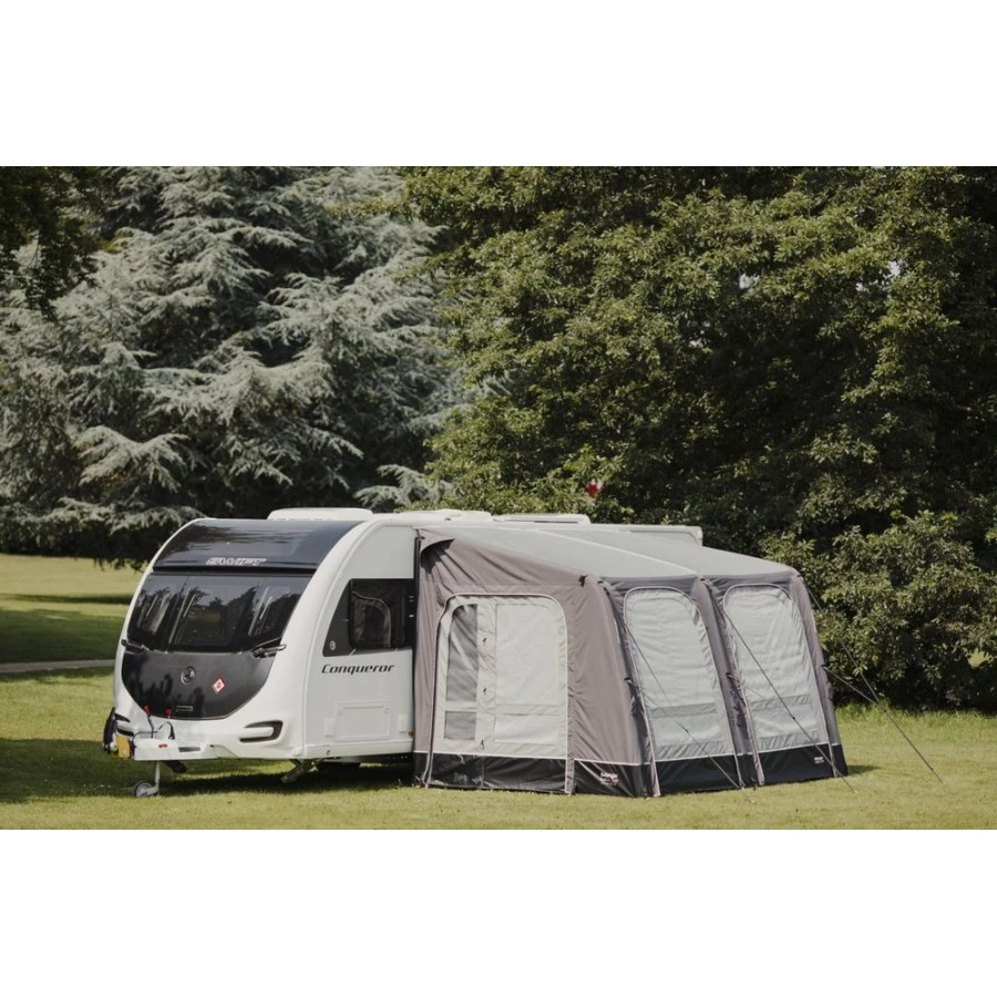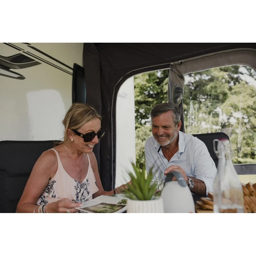 Zur Ausstattung der Caravan-Vorzelte gehören unter anderem Schaumstoff-Windfang, ein Windkragen, 2x Radkastenabdeckungen, Stahlheringe für bergigen Boden und ein Hering mit Transporttasche, eine Zweiwegepumpe mit Transporttasche und die EasyPack-Transporttasche, die über Kompressionsgurte und eine große Eingangsöffnung zum leichteren Packen verfügt. Das Zelt wurde gemäß der europäischen Norm EN 5912 getestet.
