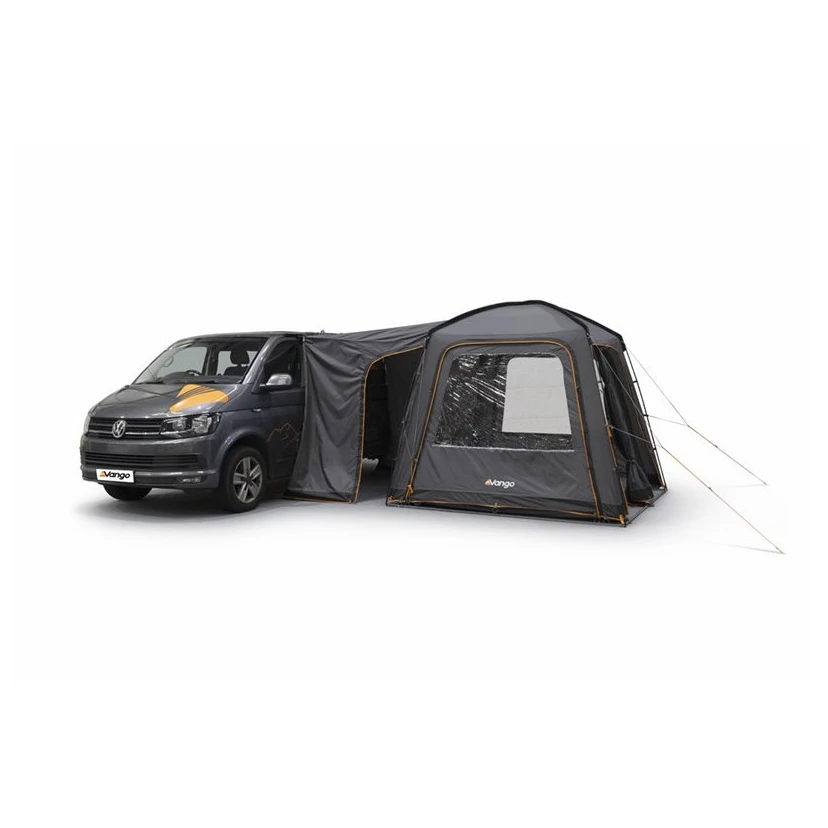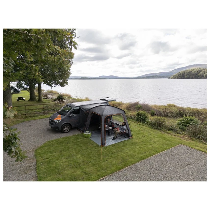 Vango Tailgate Hub II Low ist ein praktisches Vorzelt für das Camping mit niedrigen Fahrzeugen, wie kleinen Wohnwagen oder Vans. Dieses Modell bietet Schutz vor widrigen Wetterbedingungen, sowohl vor Regen als auch vor Sonne. Durch den freitragenden Verbindungstunnel mit zwei Eingängen haben Sie bequemen Zugang sowohl zum Vorder- als auch zum Hinterteil des Fahrzeugs.