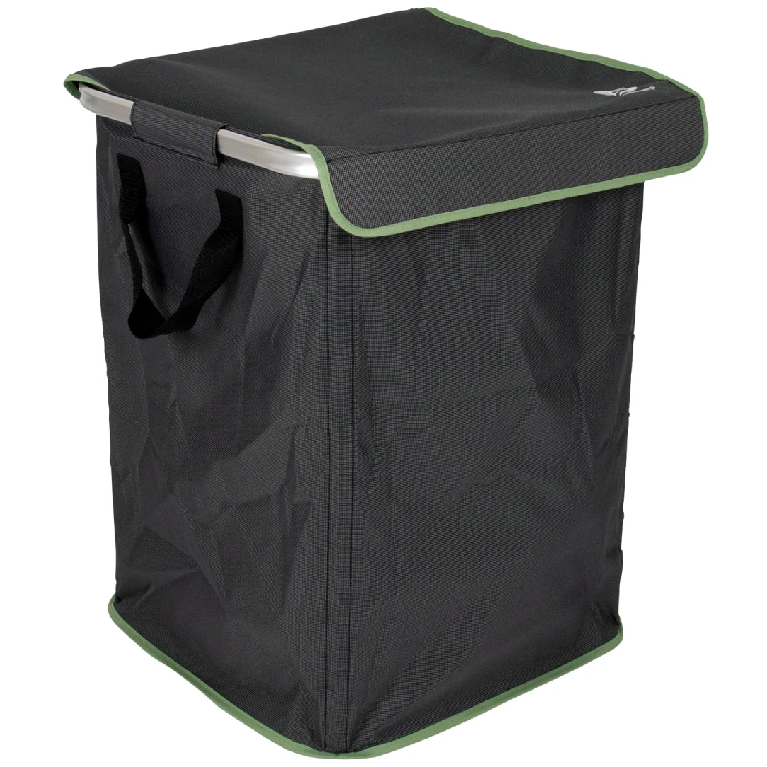 Praktischer und lagerfreundlicher XL-Wäschekorb mit Deckel der Marke Bo-Camp. Hergestellt aus strapazierfähigem 600D Oxford-Polyester, ideal für Wohnwagen, Zelte und das Zuhause.
