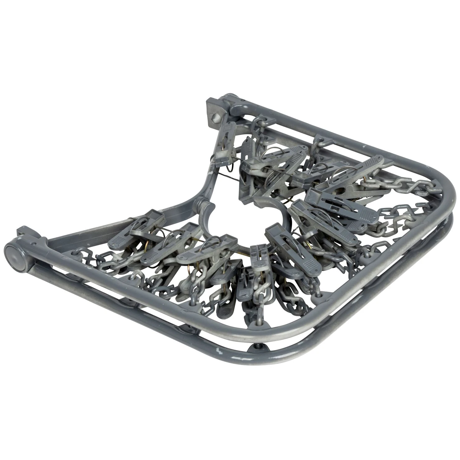 Rechteckiger Wäscheständer Bo-Camp Wäschekarussell klappbar 24 aus Kunststoff. Durch einen Aufhängehaken lässt es sich an vielen Stellen befestigen. Leicht und sehr kompakt. Enthält 24 Wäscheklammern.