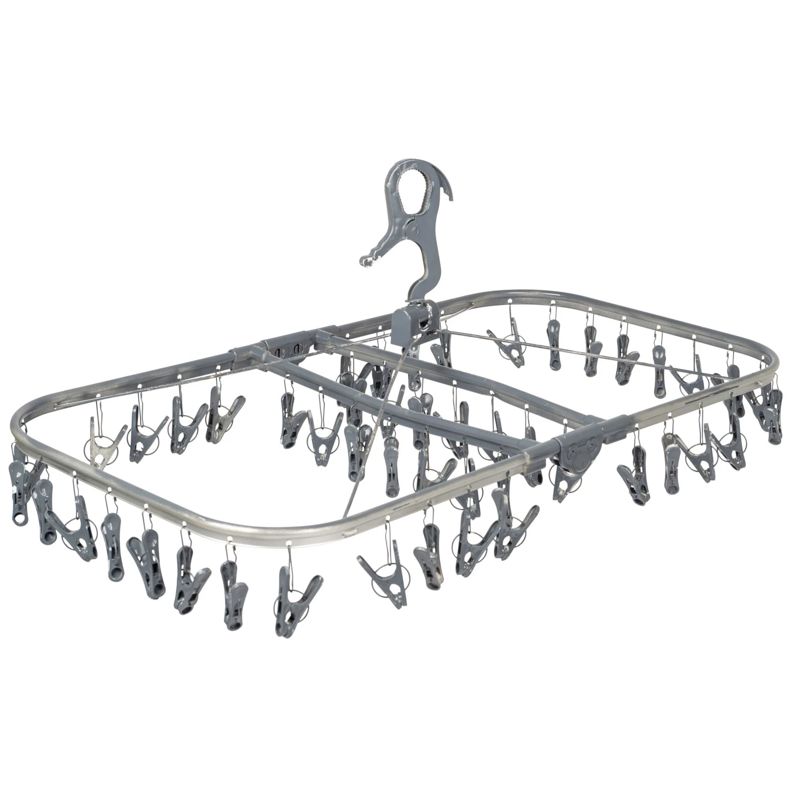 Rechteckiger Wäscheständer Bo-Camp Wäschekarussell klappbar 48 cm aus hochwertigem Aluminium. Durch einen Aufhängehaken lässt es sich an vielen Stellen befestigen. Leicht und sehr kompakt. Enthält 48 Wäscheklammern.