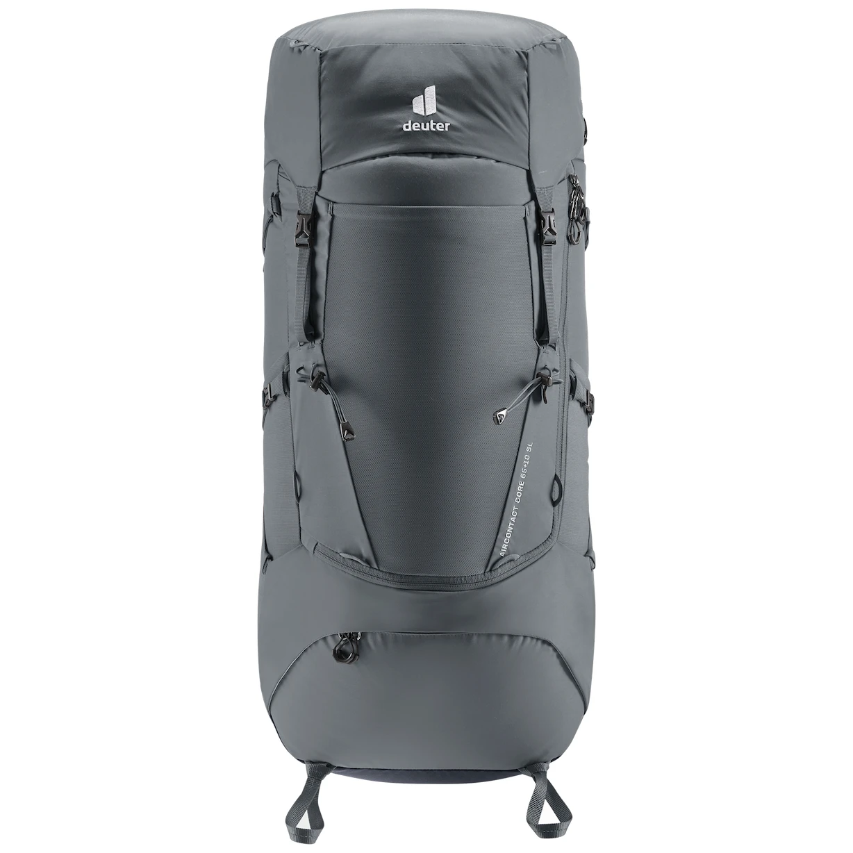 Dieser komfortable Wanderrucksack Aircontact Core 65+10 SL der Marke Deuter ist dank seiner modularen Gurte, die sich je nach Tour oder mitzunehmender Ausrüstung so positionieren lassen, dass unterschiedliche Gegenstände befestigt werden können, sehr vielseitig. Seinen hohen Tragekomfort verdankt er dem Deuter Aircontact-Rückensystem mit Air Spacer-Mesh und großem Belüftungskanal sowie ergonomischen ActiveFit-Schultergurten und einem verstellbaren Brustgurt.