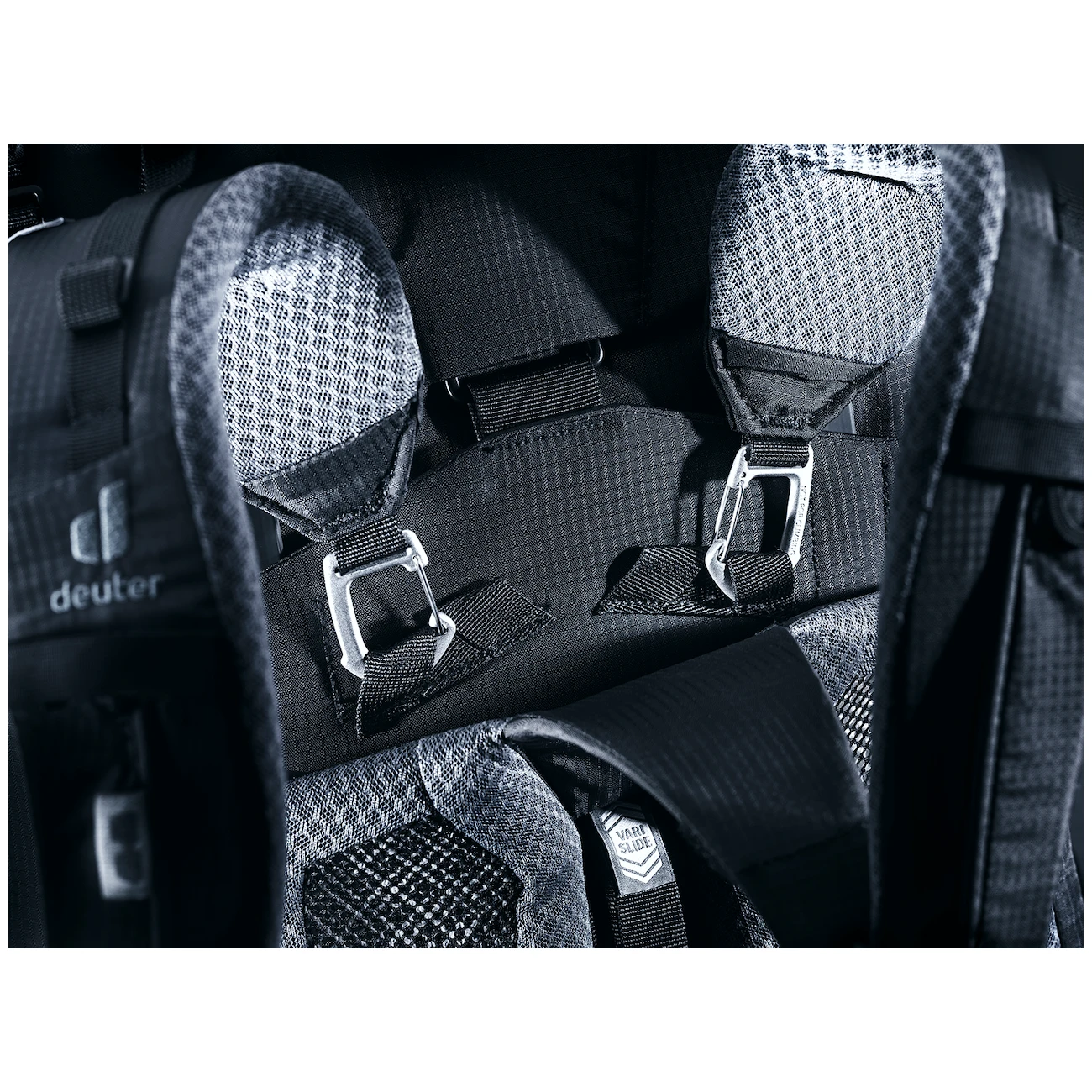 Der Rucksack ist aus robustem, reißfestem Material gefertigt. Er ist extrem leicht und 70 % des Gewichts ruhen auf dem reichlich gepolsterten, ergonomisch geformten Hüftgurt für eine bessere Gewichtsverteilung. Das Aircontact Pro-Rückensystem mit Funktionsschaum und Belüftungsnetz sorgt für einen angenehmen Luftaustausch bei jeder Bewegung. Rahmenstreben aus Aluminium helfen dabei die Form zu halten. Dank der VariSlide-Technologie können Sie die Länge der Rückenlehne entsprechend Ihrer Körpergröße anpassen. Auch die ActiveFit-Schultergurte sind ergonomisch geformt und verfügen über einen 2-fach verstellbaren Brustgurt mit Sicherheitspfeife. Das Ergebnis ist ein Rucksack, der auch nach langen Kilometern und schwerer Belastung bequem sitzt.