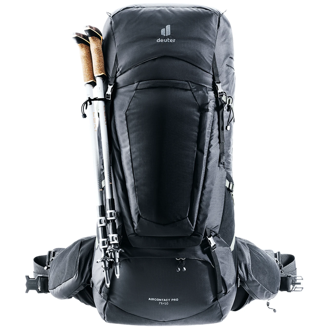 Der Wanderrucksack Aircotact Pro 75+10 der Marke Deuter ist ideal für Höhenwanderungen und Mehrtagestouren.