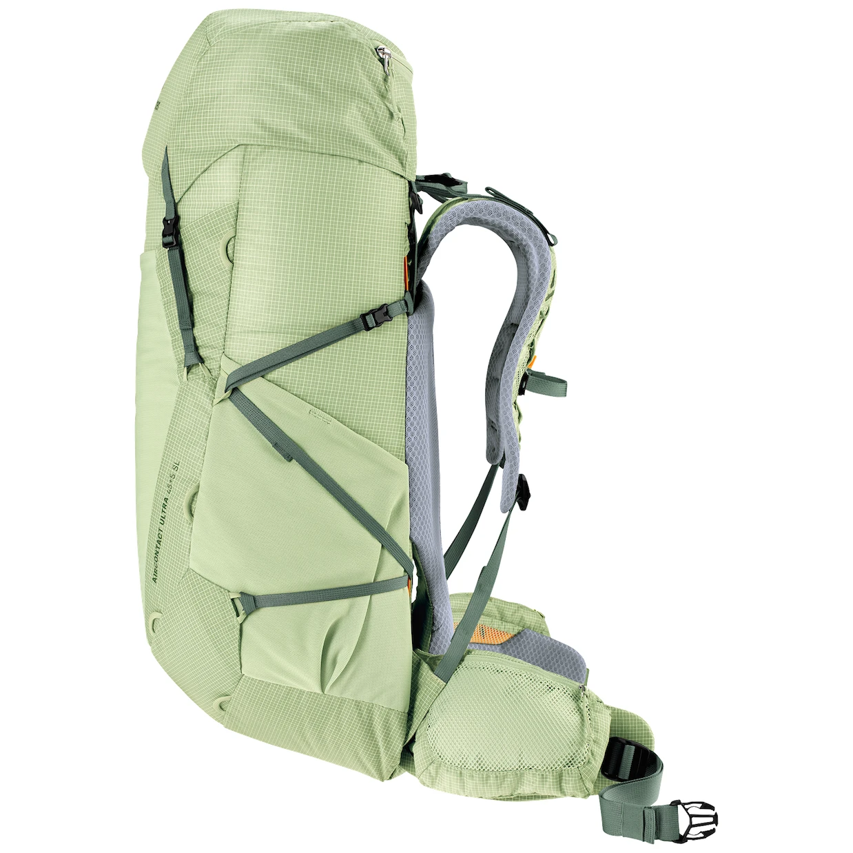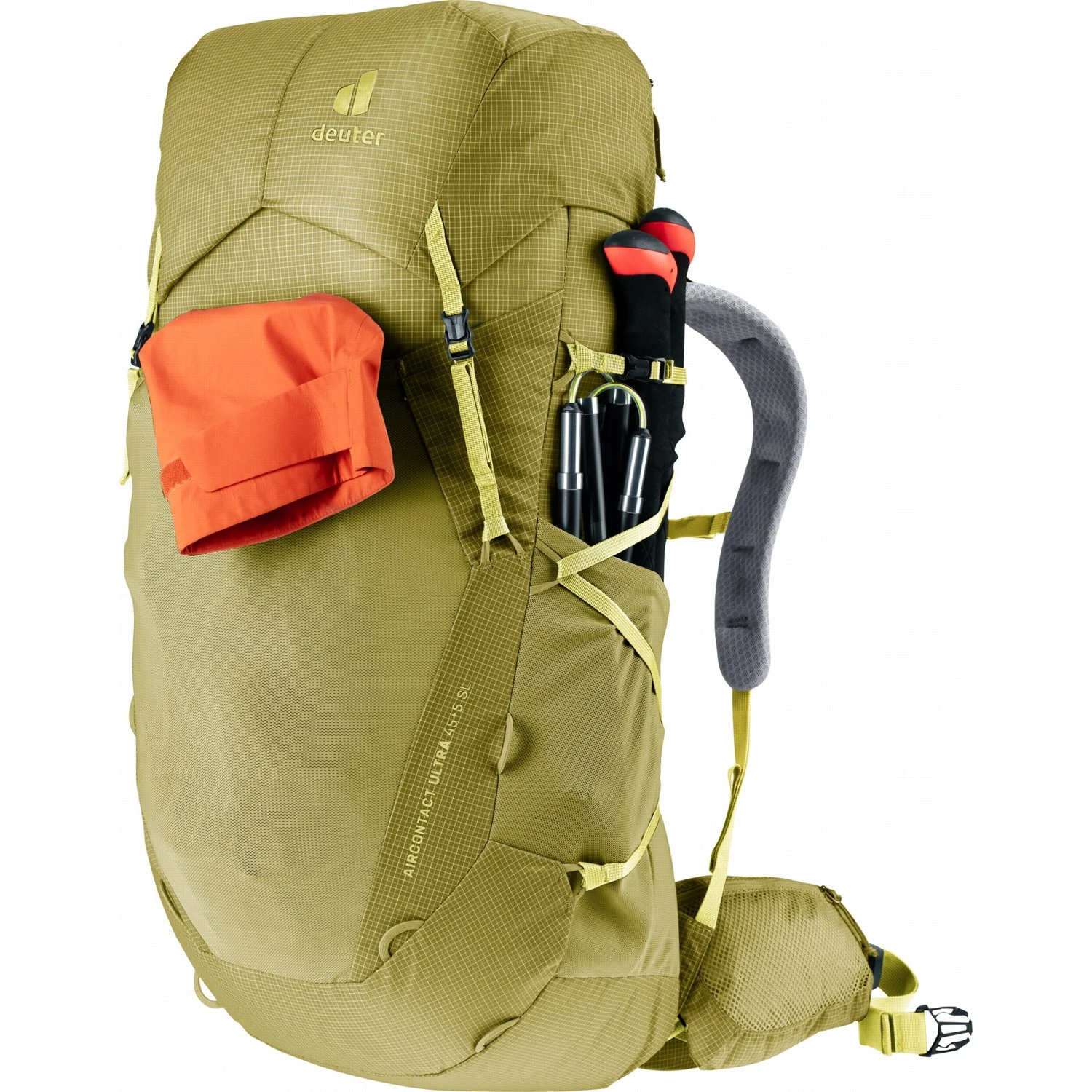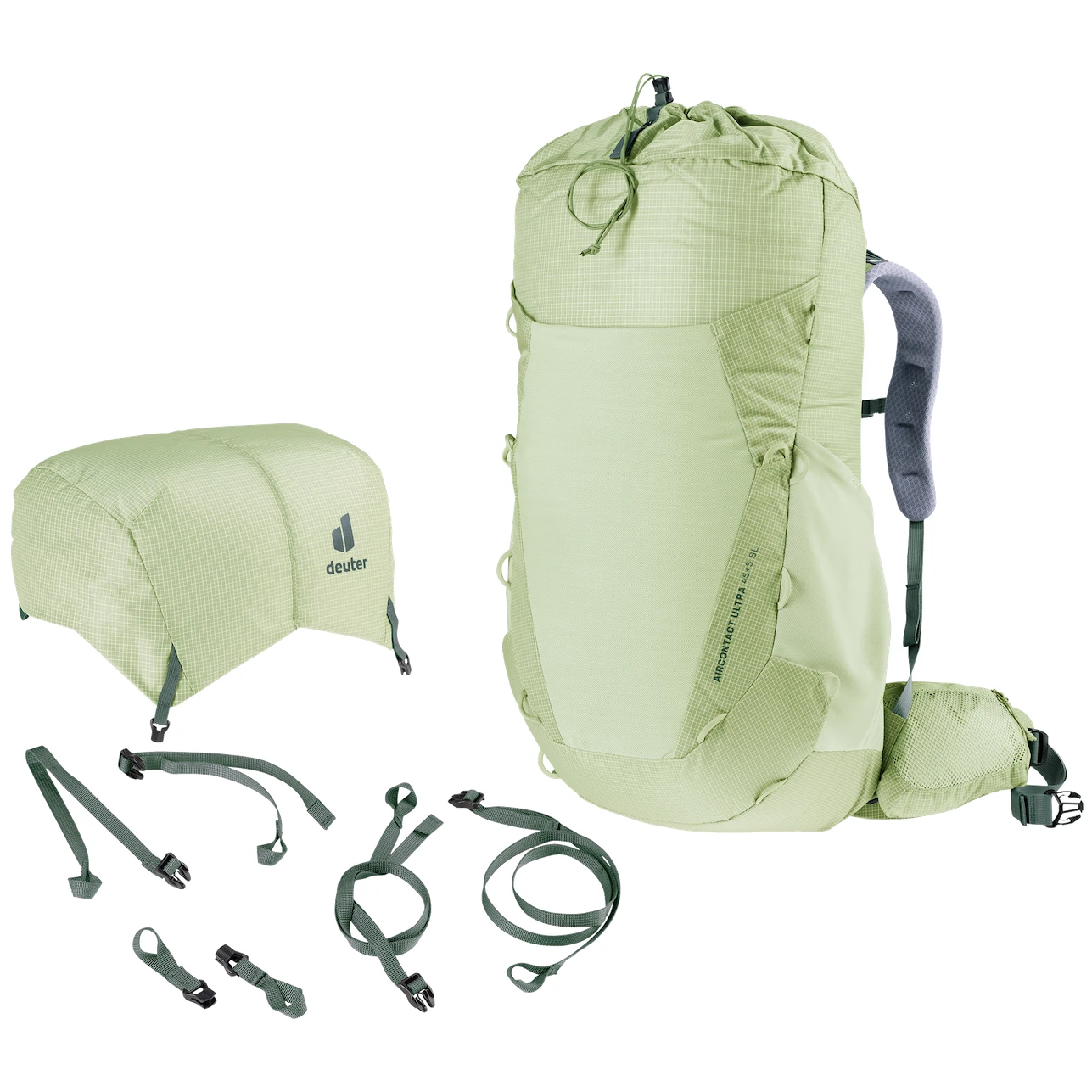 Der Aircontact Ultra 45+5 SL Wanderrucksack der Marke Deuter ist ein auf das Wesentliche reduzierter Rucksack aus zertifiziertem bluesign® Gewebe, . Es hat ein geringes Gewicht, ein leicht verstellbares Rückensystem und ein bequemes ergonomisches Lendenpolster. Der Rucksack verfügt über praktische Schlaufen und variable Gurte zur Befestigung von GPS, Karte, Isomatte oder Zelt. Sie werden auch die Möglichkeit zum Abnehmen des oberen verstellbaren Deckelszu schätzen wissen, wodurch das Gesamtgewicht des Rucksacks reduziert wird.