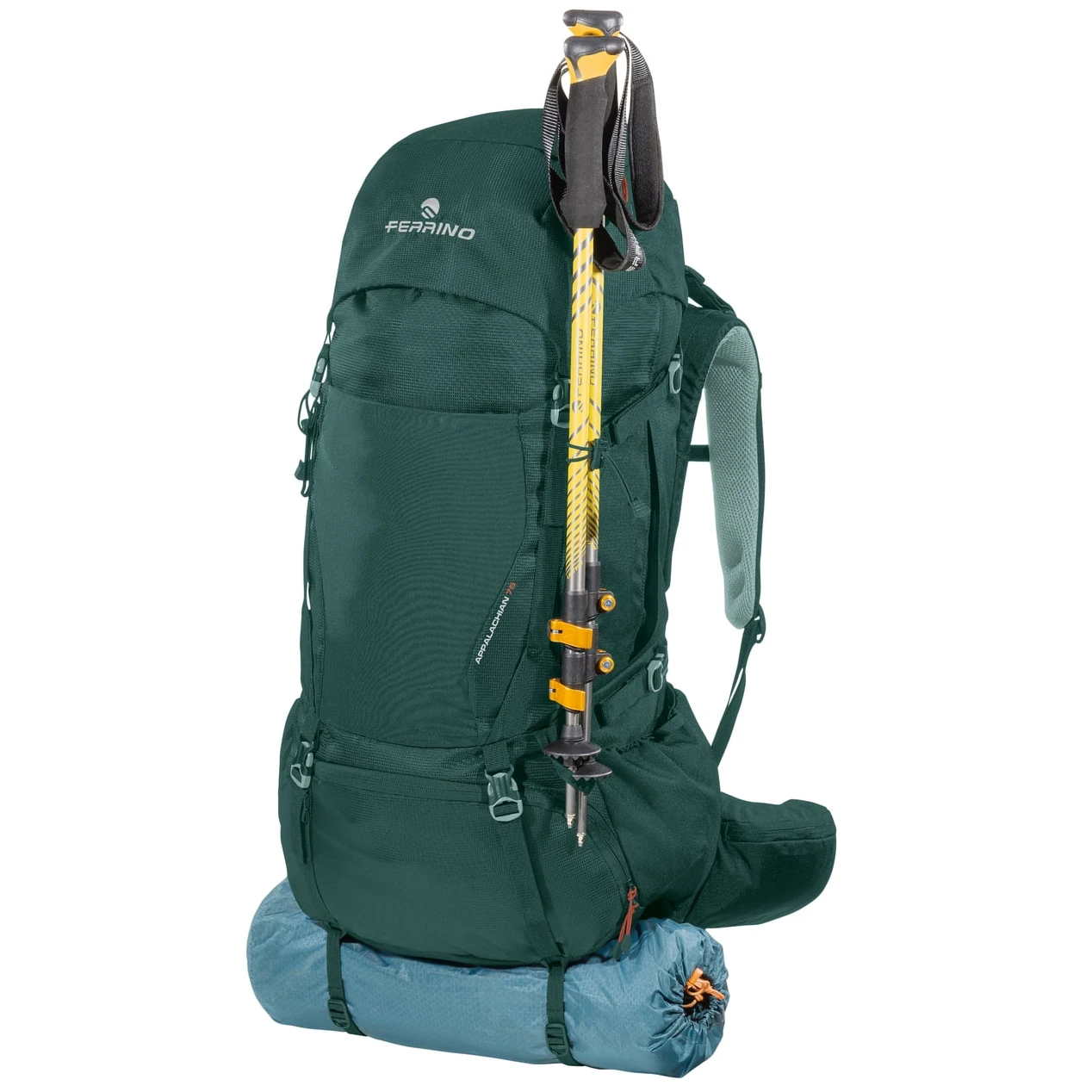 Der großvolumige Zwei-Kammer-Wanderrucksack Appalachian 75 der Marke Ferrino mit 75 Litern Fassungsvermögen ist ein zuverlässiger Begleiter für Mehrtageswanderungen oder andere Abenteuer. Das innovative ergonomische verschiebbare Back Ergo Adjustment -Rückensystem ermöglicht zusammen mit der Aluminiumkonstruktion eine gleichmäßige Verteilung des Rucksackgewichts auf Schultern und Hüften. Gleichzeitig passt er sich durch das Gleitrückensystem optimal an unterschiedliche Körpergrößen an. Durch die Polsterung der Schultergurte und des Hüftgurtes ist maximaler Tragekomfort gewährleistet, auch bei voller Beladung.