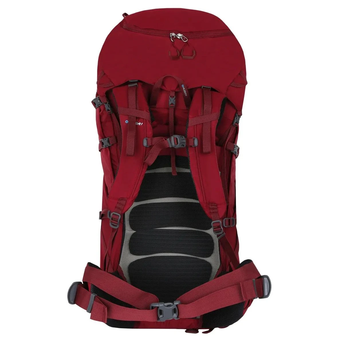 Das Mesh-Rückensystem schafft Platz zwischen Ihrem Rücken und dem Rucksack. Die Luft kann frei zirkulieren, was die Rückenbelüftung verbessert und die Schweißverdunstung beschleunigt. Der Nachteil ist eine leichte Verringerung des Innenvolumens und ein schlechterer Schwerpunkt.