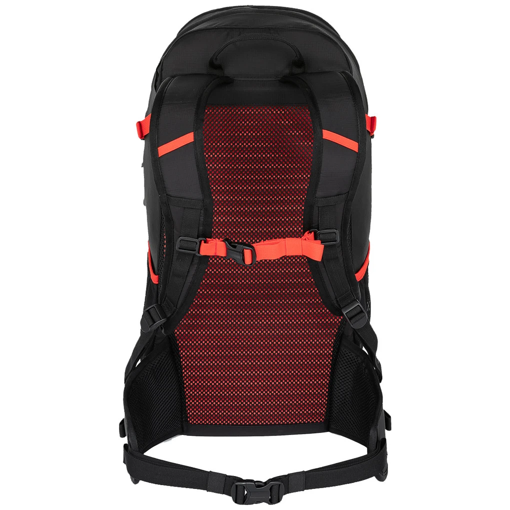 Das Mesh-Rückensystem schafft Platz zwischen Ihrem Rücken und dem Rucksack. Die Luft kann frei zirkulieren, was die Rückenbelüftung verbessert und die Schweißverdunstung beschleunigt. Der Nachteil ist eine leichte Verringerung des Innenvolumens und ein schlechterer Schwerpunkt.