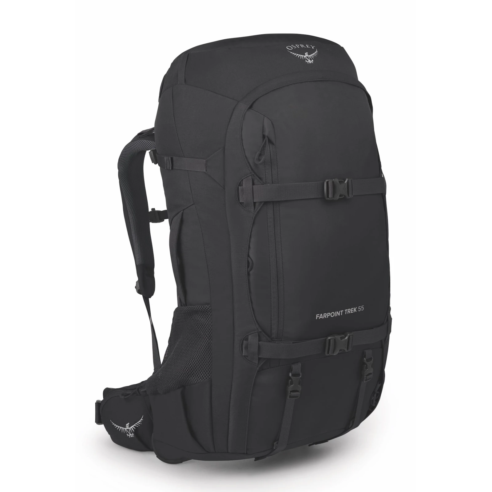 Der Farpoint Trek 55-Rucksack von Osprey ist ein technisch ausgereifter Rucksack, den Sie auf einer Wanderung oder auf Reisen zu schätzen wissen werden. Mit einem Volumen von 55 Litern können Sie alle notwendigen Dinge darin verstauen. Er ist mit einem anpassbaren Rückensystem AirSpeed™ausgestattet, das dank 3D-Stretch-Mesh für eine perfekte Belüftung im Rückenbereich sorgt. Ergänzt wird das Panel dann noch durch bequeme, atmungsaktive und verstellbare Schultergurte, welche durch einen Brustgurt mit Pfeife und einen gepolsterten Hüftgurt mit Schnalle ergänzt werden. Der Rahmen aus 4mm-Draht LightWire sorgt für eine optimale Gewichtsverteilung beim Tragen.