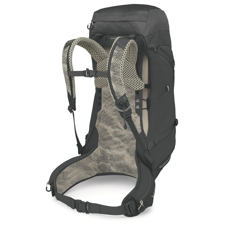 Das Mesh-Rückensystem schafft Platz zwischen Ihrem Rücken und dem Rucksack. Die Luft kann frei zirkulieren, was die Rückenbelüftung verbessert und die Schweißverdunstung beschleunigt. Der Nachteil ist eine leichte Verringerung des Innenvolumens und ein schlechterer Schwerpunkt.