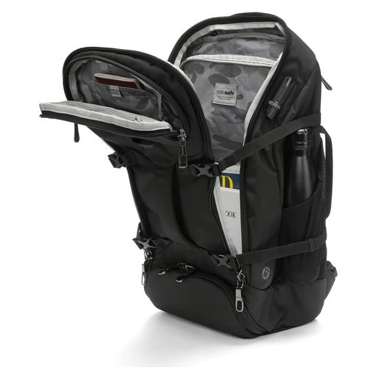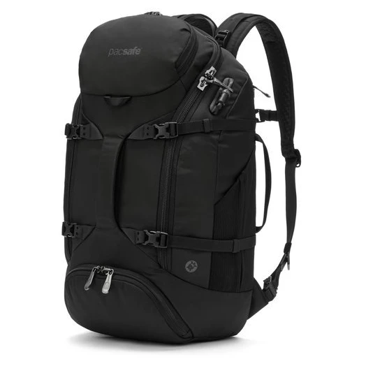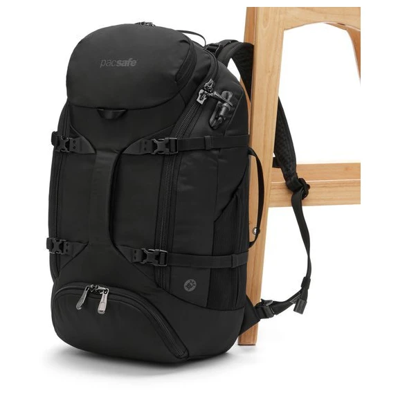 Der Venturesafe EXP35 von Pacsafe ist ein Wanderrucksack, der über die neueste Diebstahlschutztechnologie Pacsafe und einen selbstsichernden Reißverschluss verfügt und so konzipiert ist, dass Sie sich frei bewegen können; Fitnessstudio, Reisen, Arbeit, Abenteuer – mit diesem vielseitigen und geräumigen Rucksack gehört Ihnen die Welt. Schnittfestes Gewebe, abschließbare, durchstichfeste Reißverschlüsse, eine RFID-blockierende Tasche und schnittfeste Schultergurte sorgen dafür, dass Ihre Tasche, Wertsachen und Identität sicher sind. Dieser diebstahlsichere 35-Liter-Rucksack bietet Platz für einen 16-Zoll-Laptop in einem geheimen, abschließbaren Rückenfach und ist eine nachhaltigere Wahl: Er wird aus 37 recycelten Plastikflaschen hergestellt und die wasserabweisende Beschichtung ist 100 % PFC-frei.