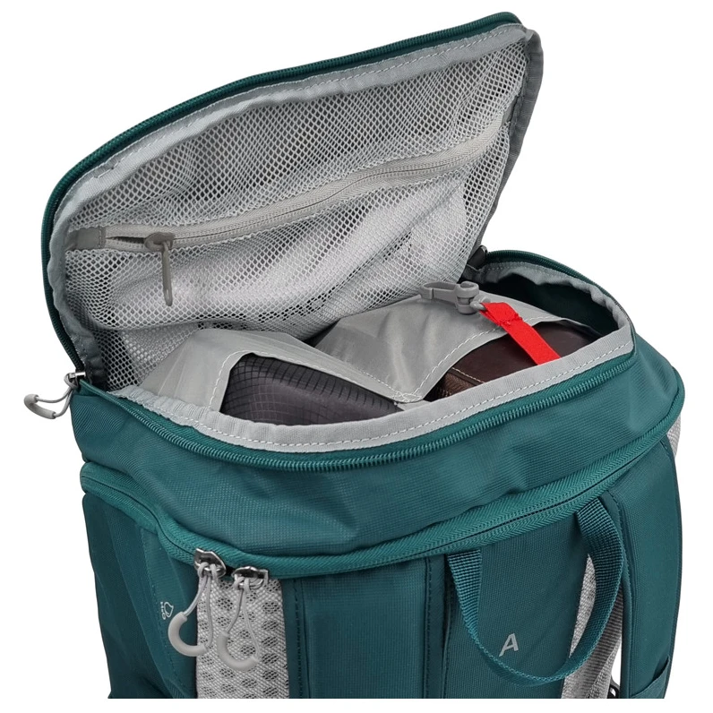Das Mesh-Rückensystem schafft Platz zwischen Ihrem Rücken und dem Rucksack. Die Luft kann frei zirkulieren, was die Rückenbelüftung verbessert und die Schweißverdunstung beschleunigt. Der Nachteil ist eine leichte Verringerung des Innenvolumens und ein schlechterer Schwerpunkt.