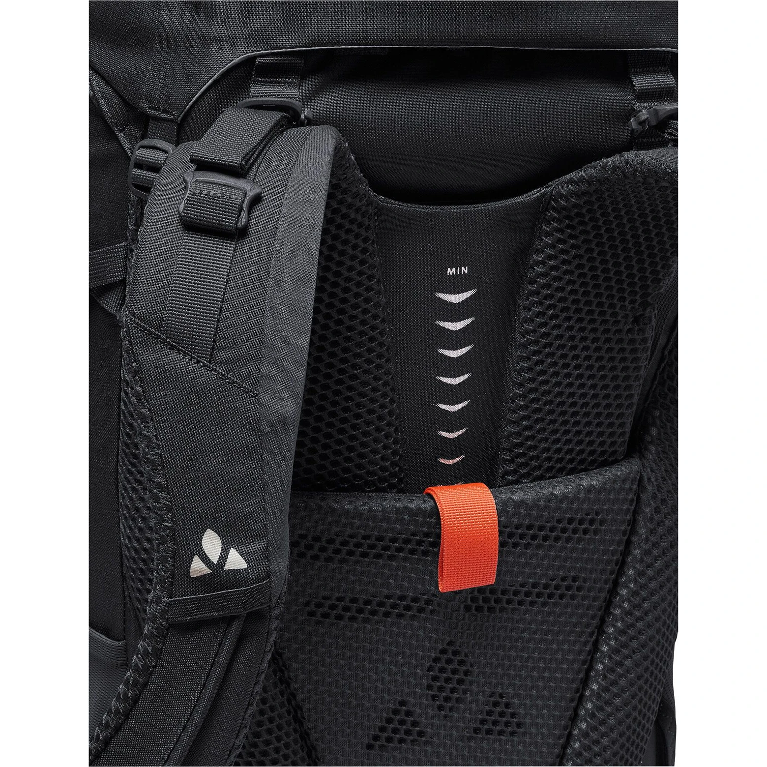 Das Mesh-Rückensystem schafft Platz zwischen Ihrem Rücken und dem Rucksack. Die Luft kann frei zirkulieren, was die Rückenbelüftung verbessert und die Schweißverdunstung beschleunigt. Der Nachteil ist eine leichte Verringerung des Innenvolumens und ein schlechterer Schwerpunkt.