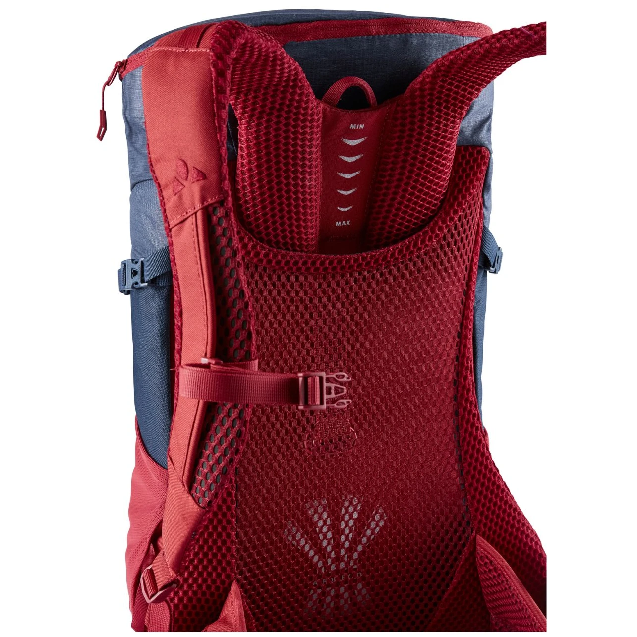 Das Mesh-Rückensystem schafft Platz zwischen Ihrem Rücken und dem Rucksack. Die Luft kann frei zirkulieren, was die Rückenbelüftung verbessert und die Schweißverdunstung beschleunigt. Der Nachteil ist eine leichte Verringerung des Innenvolumens und ein schlechterer Schwerpunkt.