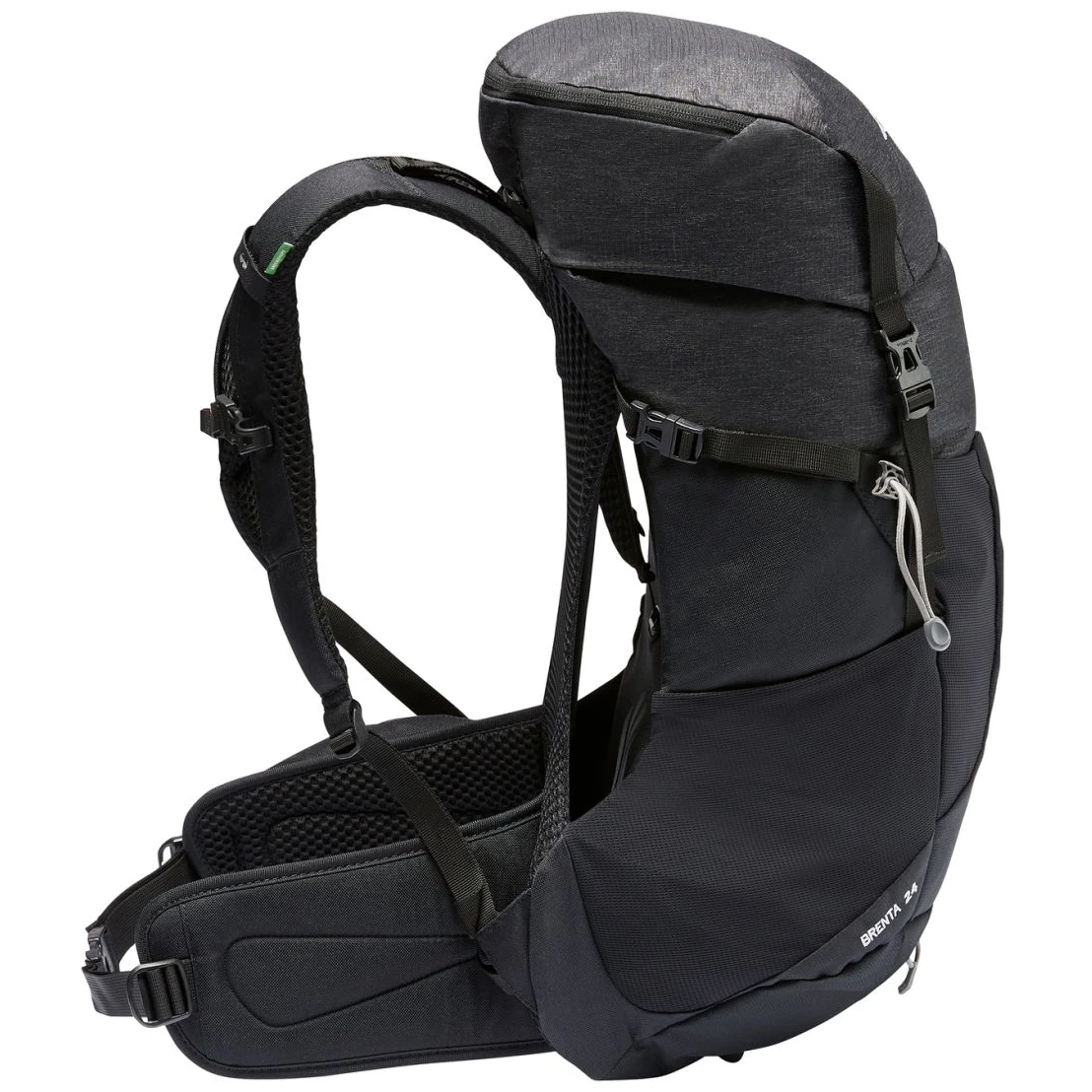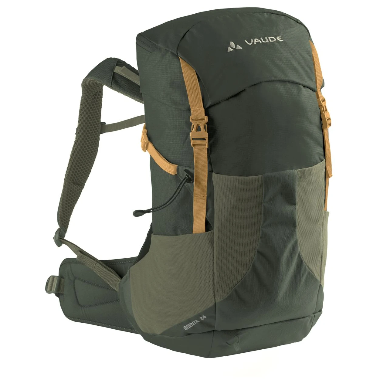 Der kompakte Wanderrucksack Brenta 24 von Vaude für Tagestouren begeistert mit der Innenfunktion des Aeroflex 3D Rückensystems, ErgoShape -Trägern und der verstellbaren Rückenlänge. Kompressionsriemen sorgen für stabilen Halt in jeder Tragesituation. Ergänzt wird der Rucksack durch verschiedene Funktionsfächer, wie beispielsweise ein Wertsachenfach, eine geräumige Stretchtasche auf der Vorderseite, eine Trekkingstockhalterung, eine Trinksystemvorrichtung und eine integrierte Regenhülle. Das Hauptmaterial des Rucksacks besteht aus 50 % recyceltem Polyester um unsere Ressourcen zu schonen.