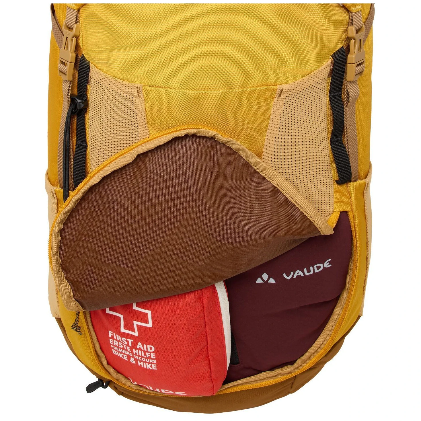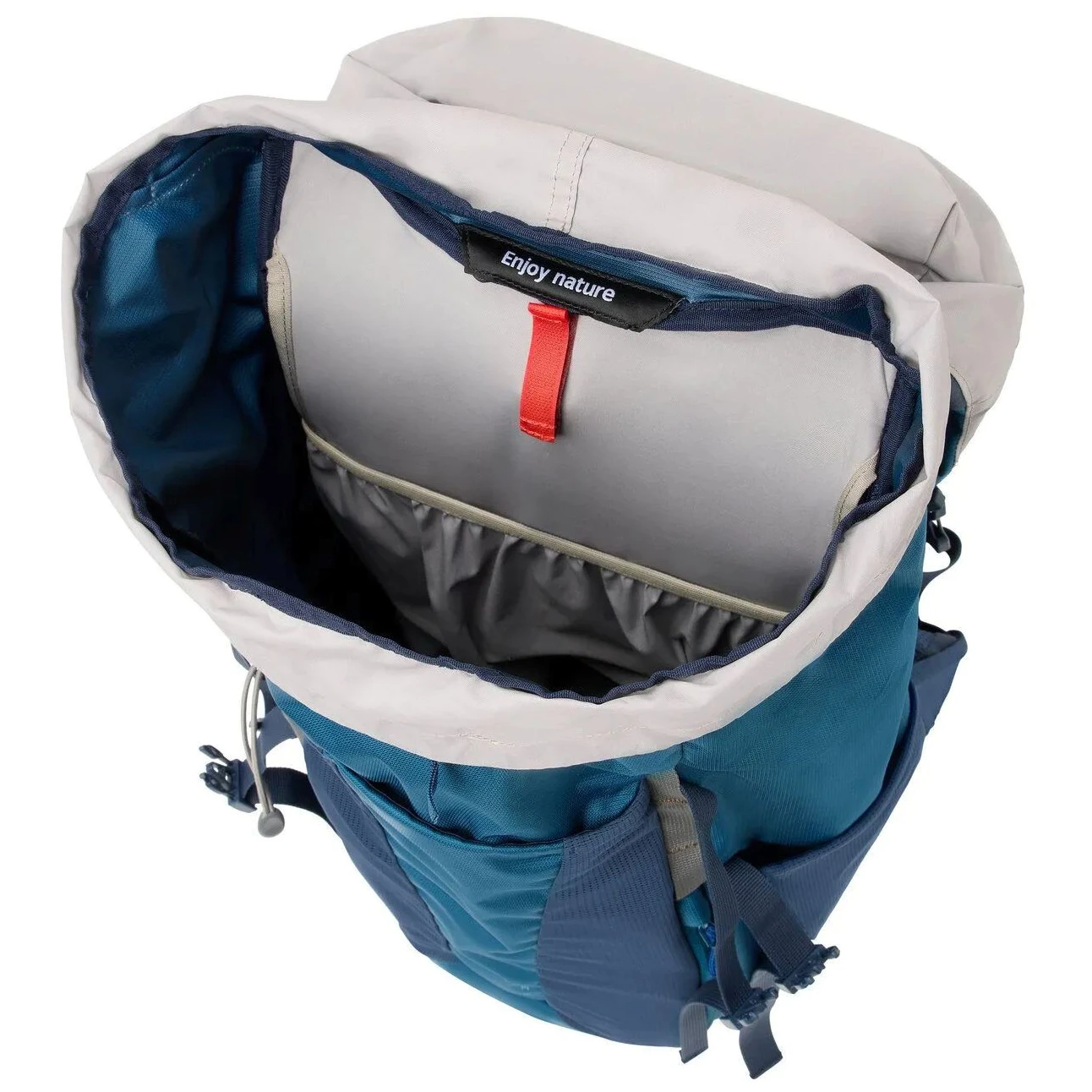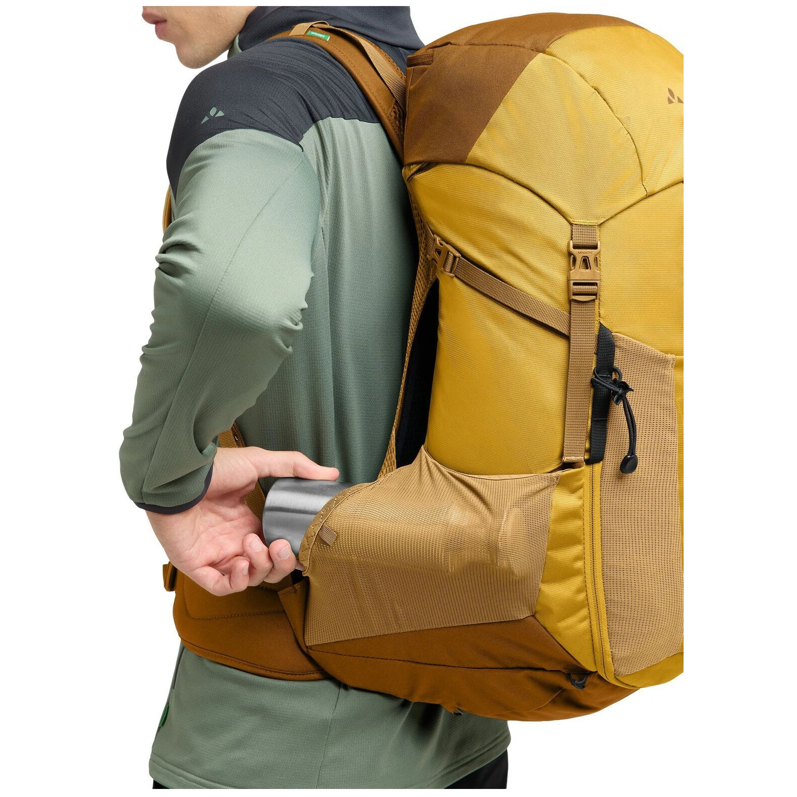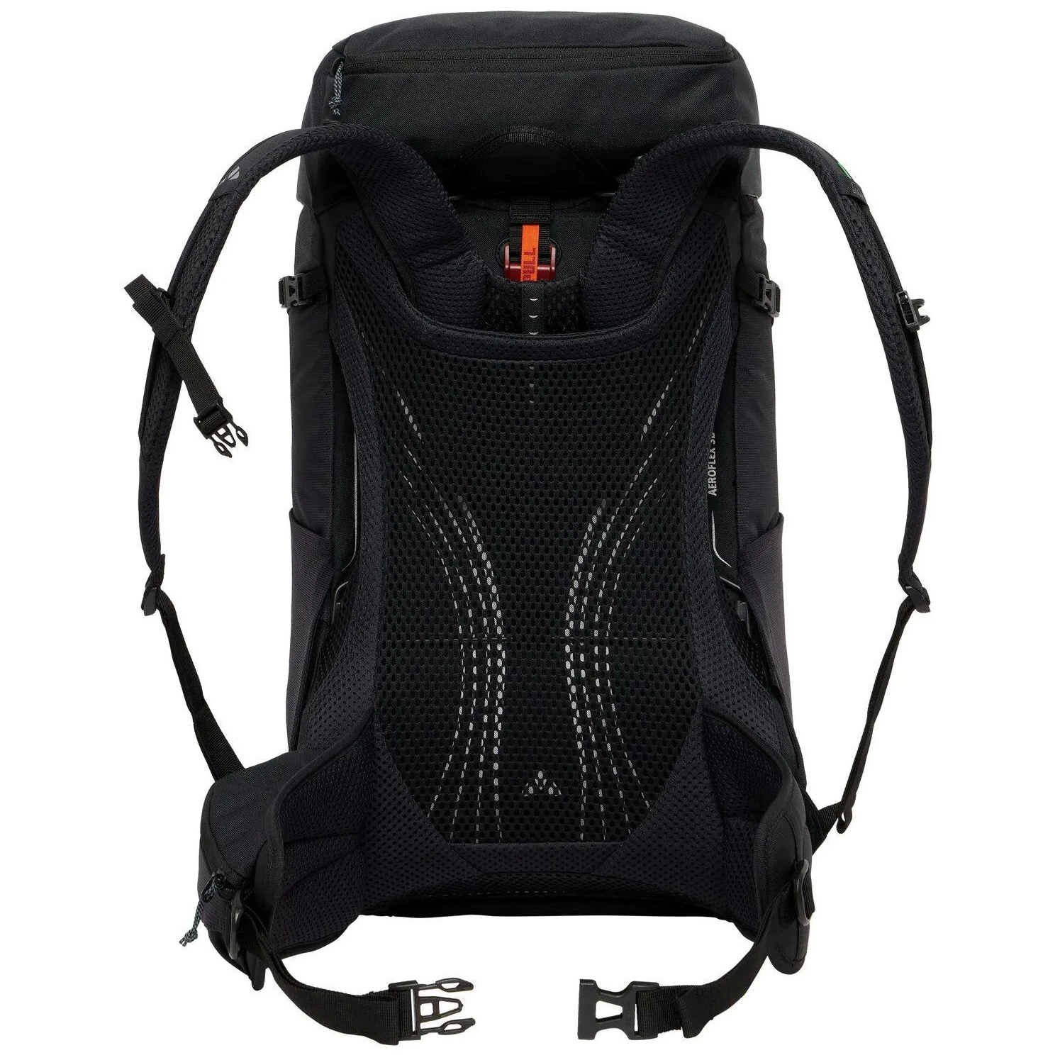 Das Mesh-Rückensystem schafft Platz zwischen Ihrem Rücken und dem Rucksack. Die Luft kann frei zirkulieren, was die Rückenbelüftung verbessert und die Schweißverdunstung beschleunigt. Der Nachteil ist eine leichte Verringerung des Innenvolumens und ein schlechterer Schwerpunkt.