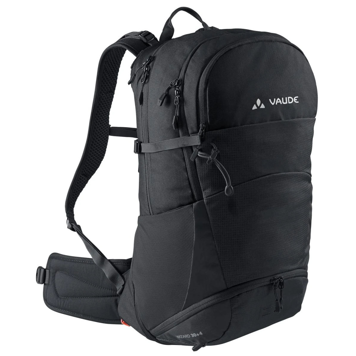 Der komfortable Wanderrucksack Wizard 30+ 4 der Marke Vaude verfügt über das Aeroflex Control -System, das für eine gute Belüftung Ihres Rückens sorgt. Zudem lässt sich der Rücken des Rucksacks durch das Shifting Back Length -System optimal an die eigene Körpergröße anpassen . Eine integrierte Reißverschluss-Volumenerweiterung und ein praktischer Organizer in der Vortasche sorgen für Flexibilität und Ordnung. Das vom Hauptfach getrennte untere Fach ist von außen zugänglich und kann bei Bedarf zur Aufbewahrung nasser Kleidung genutzt werden. Der Rucksack ist mit externen Netztaschen, einer Deckeltasche, einer Hüftgurttasche, einer Trinksystemvorrichtung und praktischen Kompressionsriemen für den vielseitigen Einsatz ausgestattet. Hergestellt überwiegend aus recyceltem Material und imprägniert mit umweltfreundlichem Eco Finish, wasserabweisend ohne Fluorcarbone (PFC).