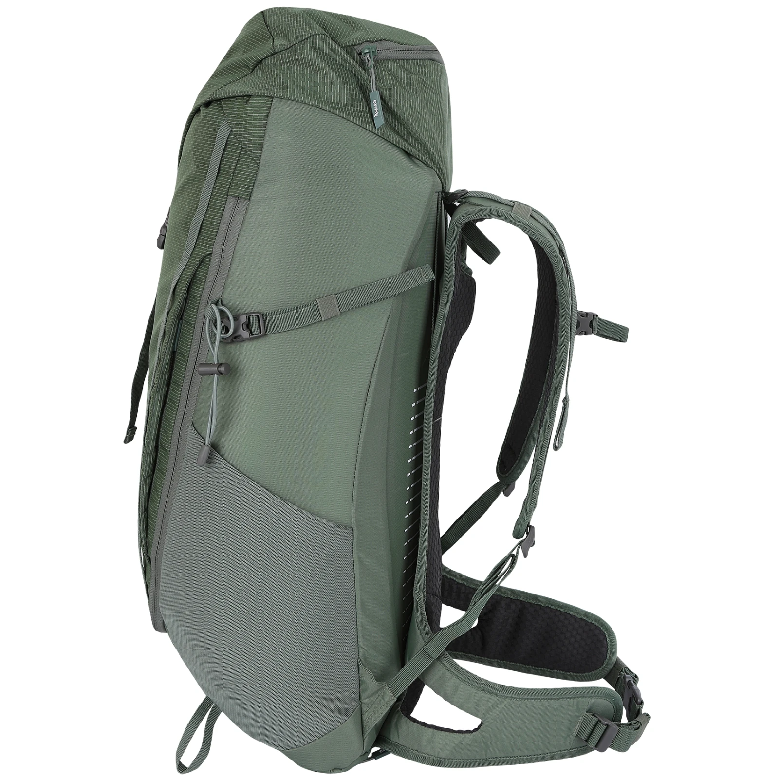 Der Zugriff auf den Rucksack ist sehr einfach und schnell. Es gibt einen klassischen Deckel, aber auch einen U-förmigen Frontzugangsreißverschluss, der das Durchwühlen des gesamten Rucksacks verhindert. Natürlich ist ein Regenschutz mit reflektierendem Logo und einer Tasche für die Trinkblase dabei.