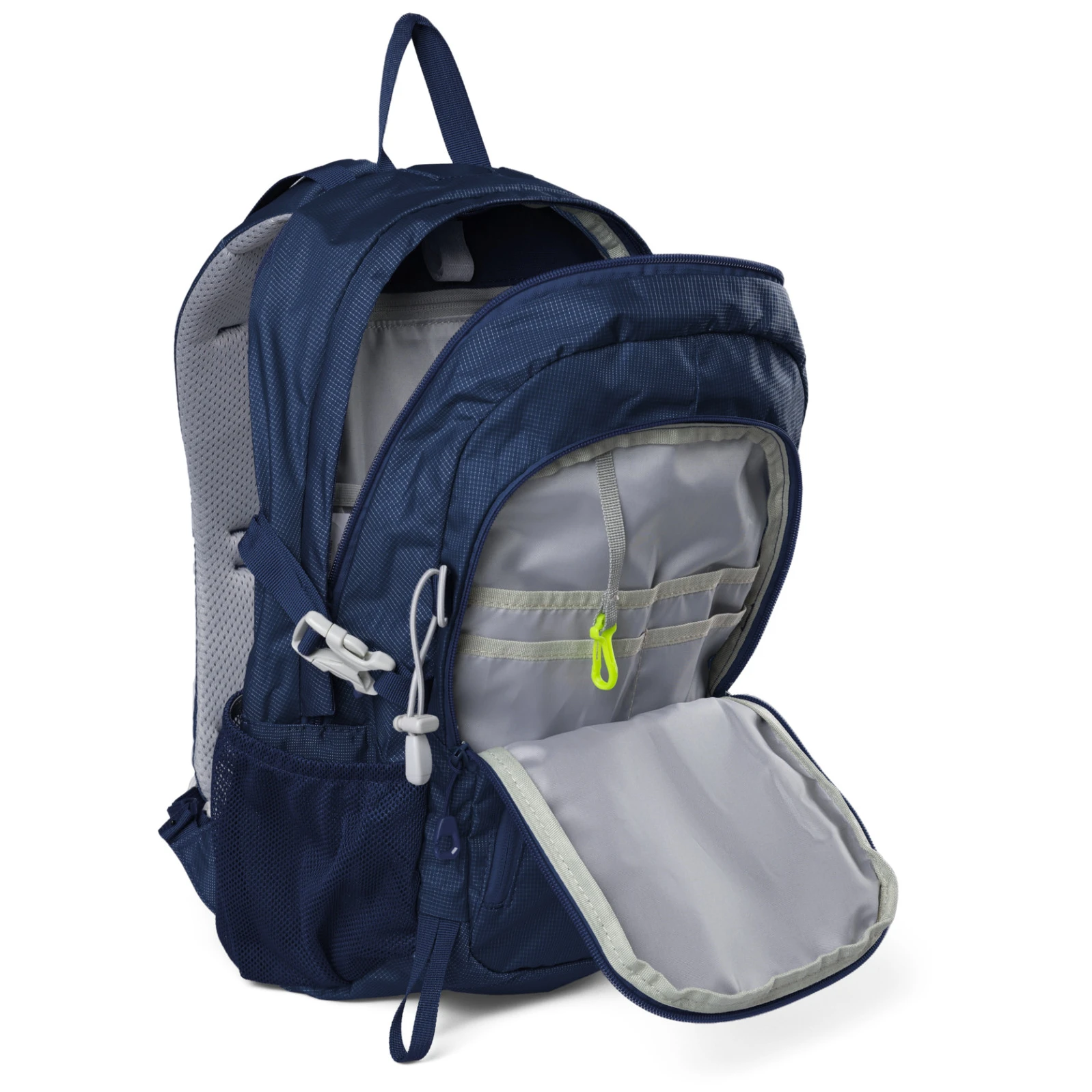 Der Rucksack verfügt über ein großes Hauptfach mit Platz für eine Trinkblase und eine Fronttasche mit Organizer und Schlüsselschlaufe. Komplettiert wird die Ausstattung durch eine kleine Fronttasche für Kleinigkeiten und eine Schlaufe für Trekkingstöcke.