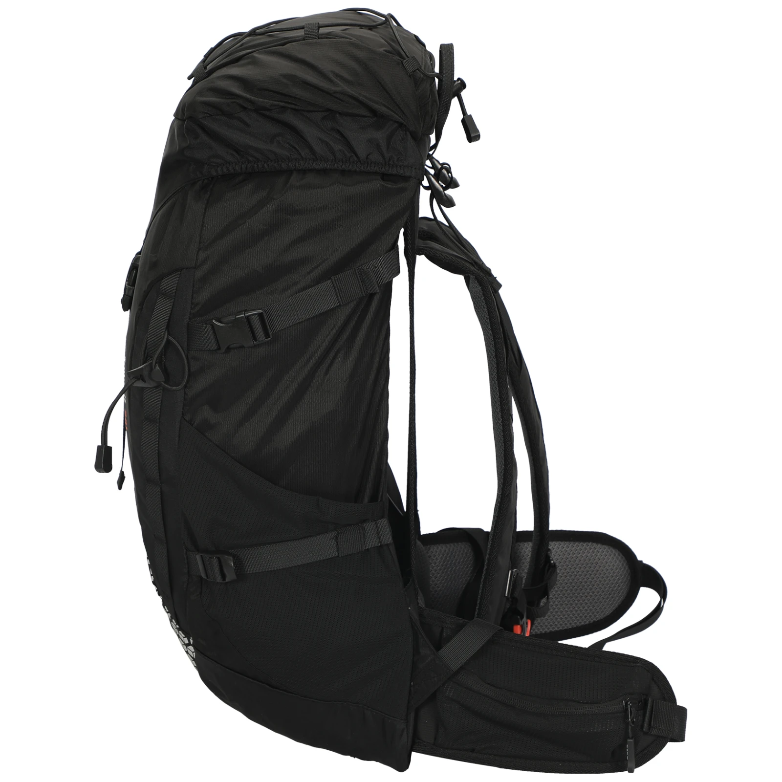 Darüber hinaus sind Schlaufen für Trekkingstöcke und ein Daisy-Chain-Gurt zum Befestigen weiterer Ausrüstung vorhanden. Insgesamt vier Kompressionsriemen ermöglichen eine effektive Volumenreduzierung bei halb leerem Rucksack. Bei schlechtem Wetter werden Sie den Regenmantel am Boden des Rucksacks sicher zu schätzen wissen.