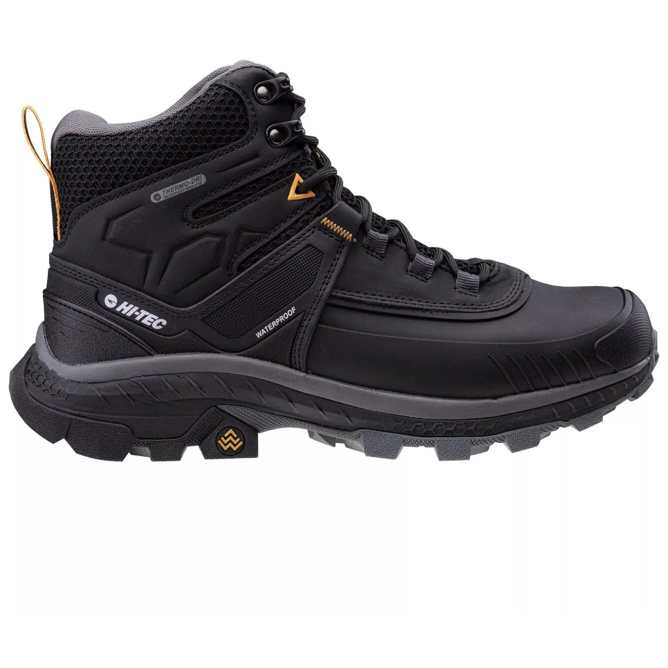 Herren-Wanderschuhe Everest Snow Hiker der Marke Hi-Tec sind aus strapazierfähigen synthetischen Materialien gefertigt. Dieser Stiefelette mit Waterproof®-Membran und 3M Thinsulate™-Isolierung sorgt bei niedrigeren Temperaturen und höherer Schneedecke für thermischen Komfort und Bequemlichkeit für Ihre Füße. Die Ortholite®-Einlegesohle und die Gummisohle reduzieren die Ermüdung Ihrer Füße nach einer Tageswanderung. Geschnürt werden die Schuhe mit einer klassischen Schnürung.