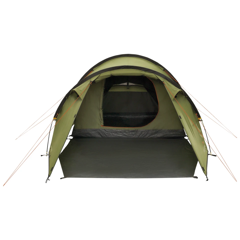 Es besteht aus WeatherGuard-Material, einem äußerst strapazierfähigen Polyestergewebe mit Polyurethan-Beschichtung und einer Wassersäule von 2000 mm, das Sie zuverlässig vor unangenehmen Wetterbedingungen schützt. Das Schlafzimmer ist mit einem wasserdichten Polyethylenboden und einem Moskitonetzausgestattet. Die Materialien entsprechen den aktuellen Normen und verfügen über Brandschutz.