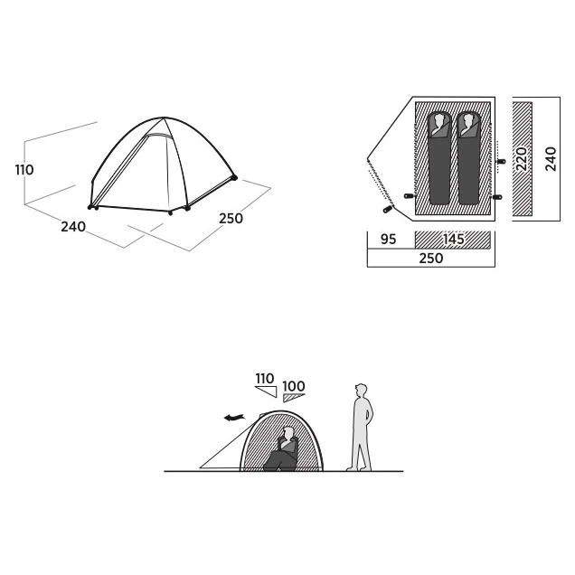 Bei heißem Wetter werden Sie sicherlich die Belüftungzu schätzen wissen, die für eine gute Luftzirkulation im Zeltsorgt. Hierzu tragen auch die zwei gegenüberliegenden Eingängebei, die das Verlassen des Zeltes zusätzlich erleichtern, wenn der Partner noch schläft.