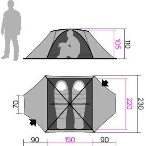 Ihr seid zu zweit und wisst nicht, für welches Zelt ihr euch entscheiden sollt? Das Hannah Covert 2 Touristenzelt ist genau das Richtige für Sie. Mit einem geringen Gewicht von 3,1 kg und kleinen Abmessungen im zusammengeklappten Zustand nimmt es kaum Platz in Ihrem Rucksack oder Fahrrad ein. Aber nachdem es fertig gebaut ist, werden Sie vom Platzangebot überrascht sein. Auf beiden Seiten des Schlafzimmers befinden sich Flure mit Türen, die sich komplett öffnen lassen, für die Belüftung sorgen 2 Lüftungsschlitze und Seitentaschen sowie ein Deckenregal dienen zur Aufbewahrung kleiner Gegenstände.