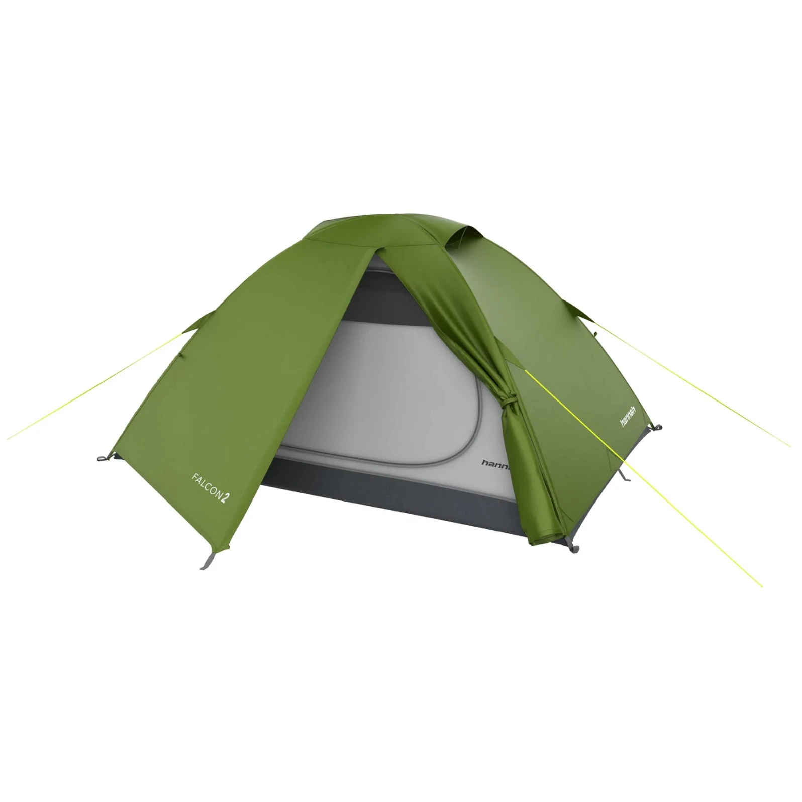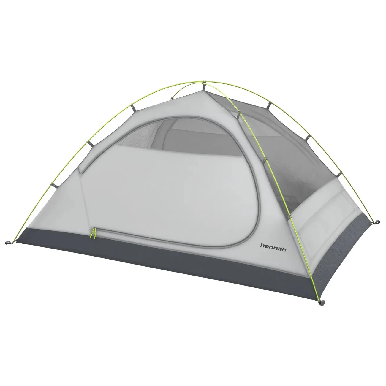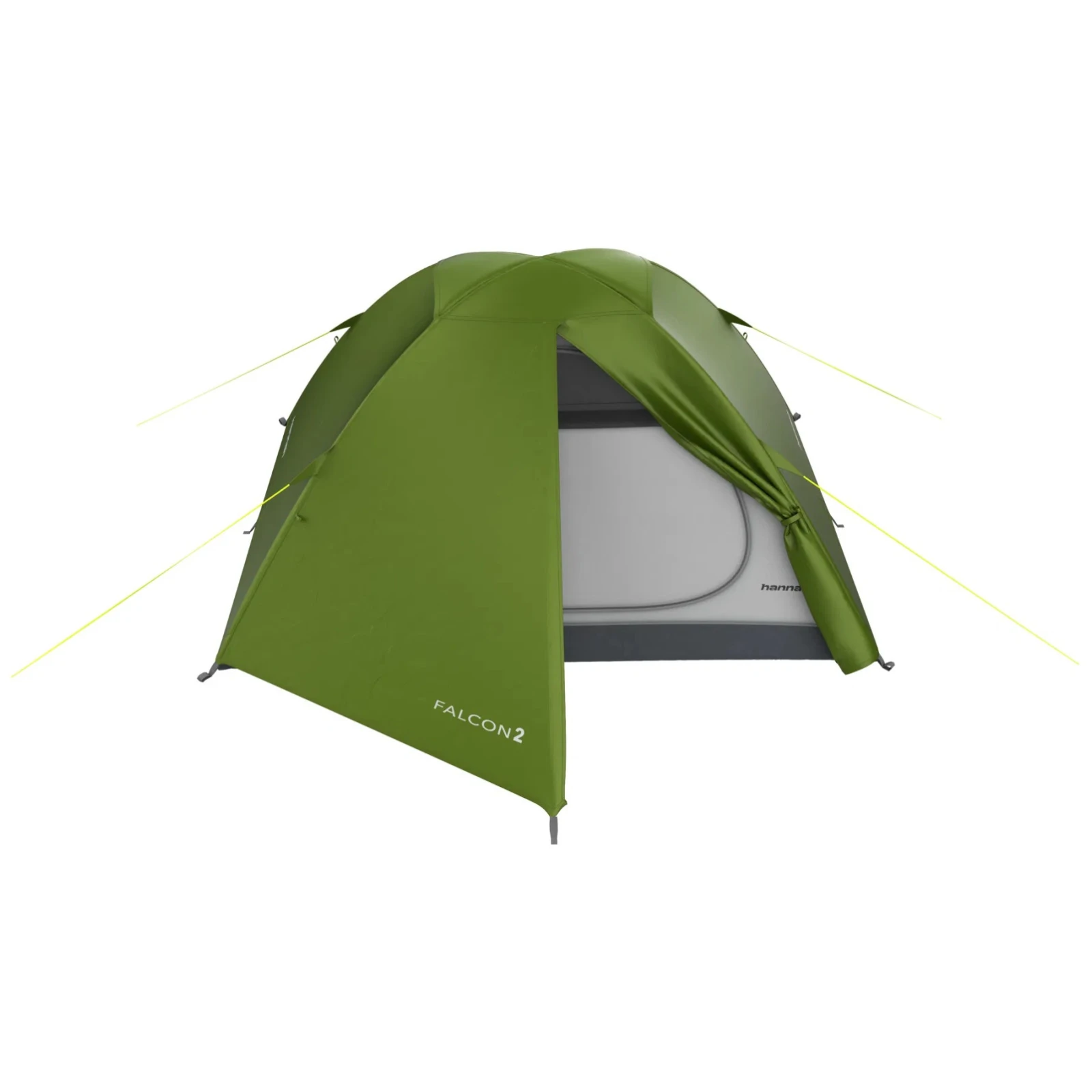 Ein ultraleichtes und kompaktes Zelt für zwei Personen Hannah Falcon 2 wird nicht nur von Bergsteigern, sondern auch von Radfahrern genutzt. Es verfügt über einen Flur mit einem Eingang. Wenn Sie Ihr Gepäck darin verstaut haben, steht Ihnen für einen bequemen Ein- und Ausstieg ein zweiter Eingang auf der anderen Seite des Zeltes zur Verfügung. Für die Belüftung sorgen Mesh-Teile des Schlafzimmers. Durch die Konstruktion aus nur zwei Stangen ist ein schneller Aufbau möglich. Das Zelt lässt sich auf die kleine Größe von 17 x 45 cm zusammenpacken.