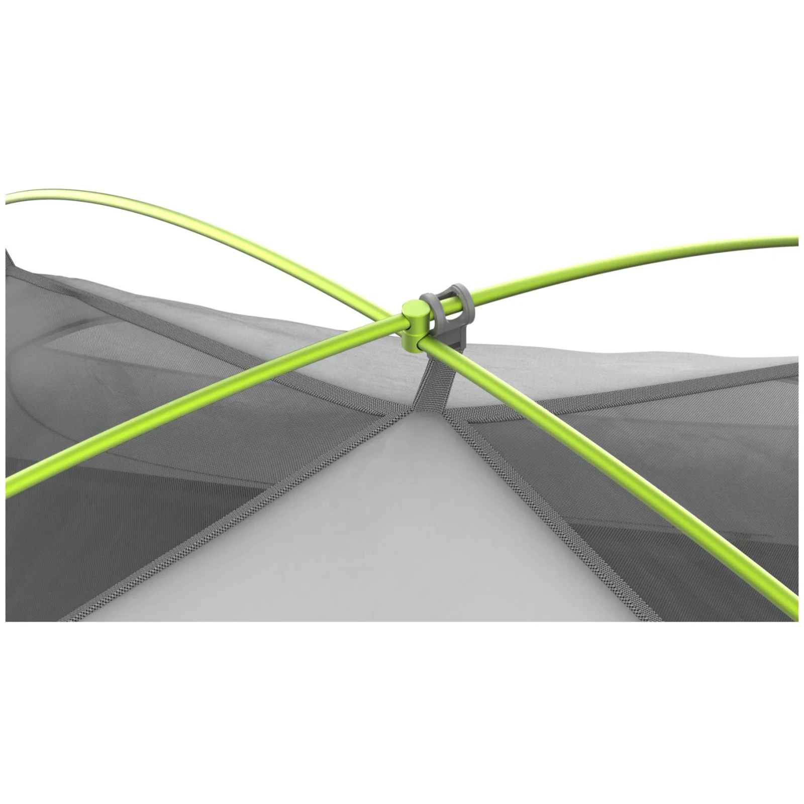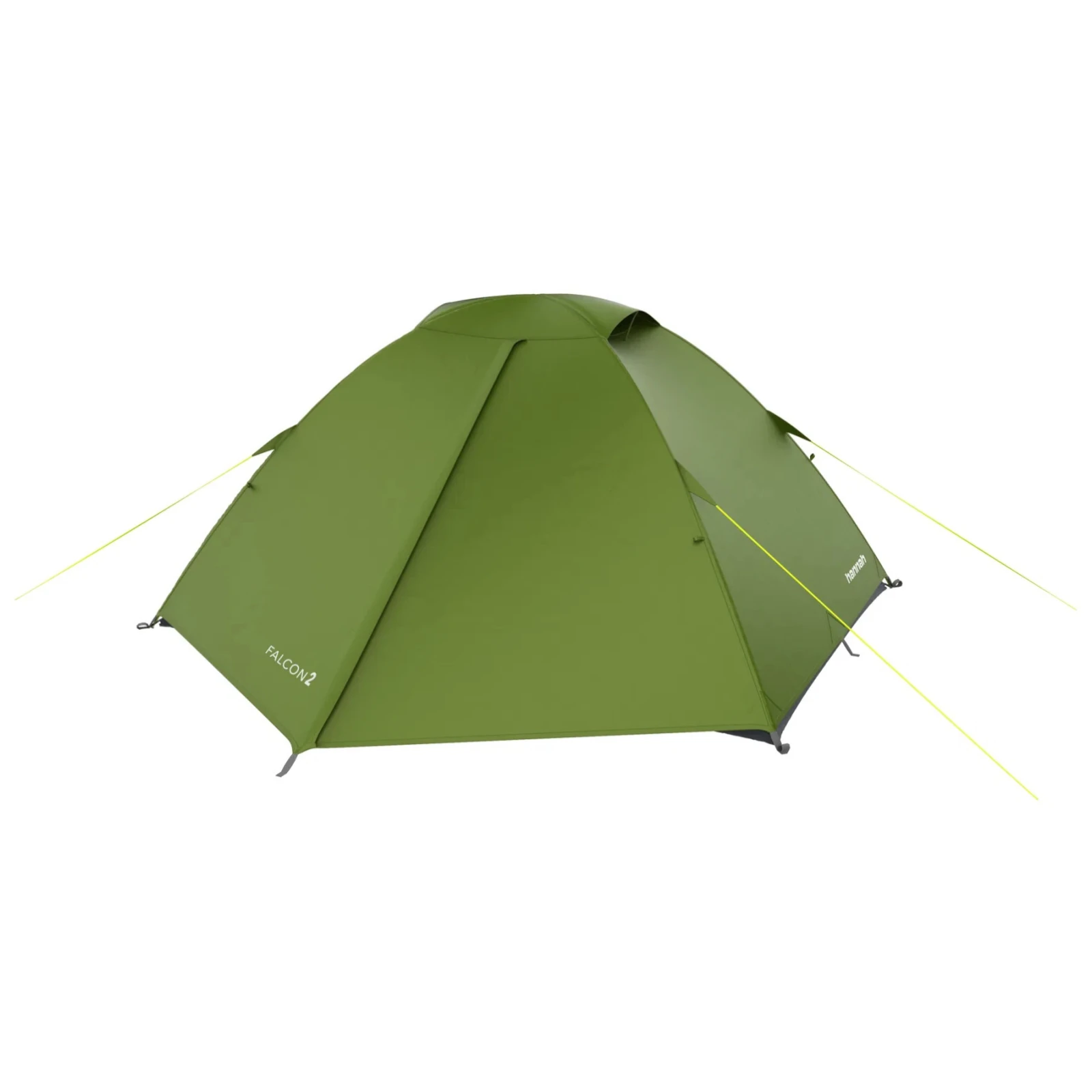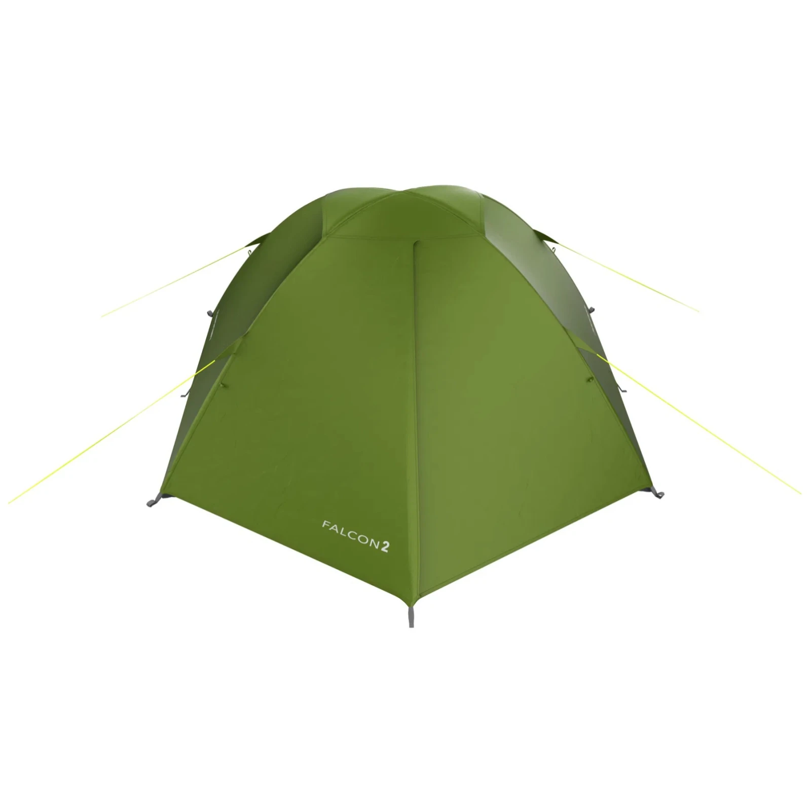 Ein ultraleichtes und kompaktes Zelt für zwei Personen Hannah Falcon 2 wird nicht nur von Bergsteigern, sondern auch von Radfahrern genutzt. Es verfügt über einen Flur mit einem Eingang. Wenn Sie Ihr Gepäck darin verstaut haben, steht Ihnen für einen bequemen Ein- und Ausstieg ein zweiter Eingang auf der anderen Seite des Zeltes zur Verfügung. Für die Belüftung sorgen Mesh-Teile des Schlafzimmers. Durch die Konstruktion aus nur zwei Stangen ist ein schneller Aufbau möglich. Das Zelt lässt sich auf die kleine Größe von 17 x 45 cm zusammenpacken.