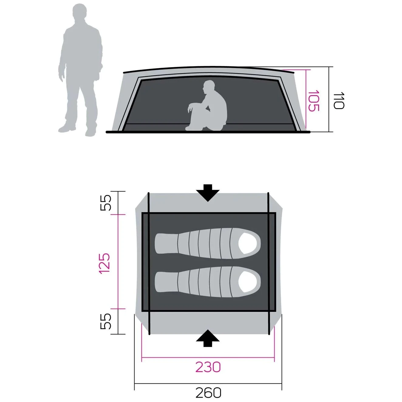- Das Zelt ist für zwei Personen ausgelegt.