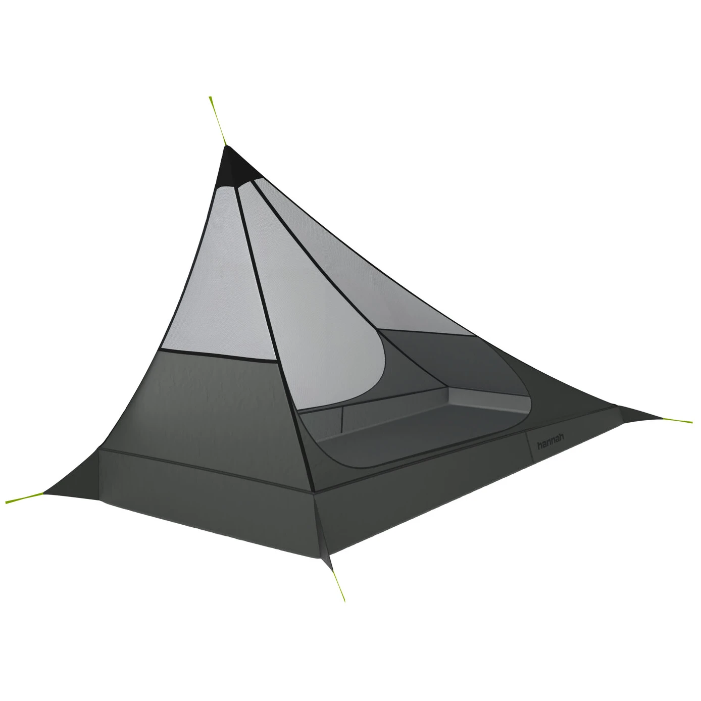 Zelt Mesh Tent 1 der Marke Hannah mit einem sehr geringen Gewicht von 550 g und hervorragender Belüftung. Es bietet ausreichend Platz und Komfort für eine Person. Es schützt Sie zuverlässig dank der langlebigen und robusten Materialien, aus denen es hergestellt ist. Die Netzwände sorgen für hervorragende Belüftung und auf der Grundfläche des Zelts findet problemlos eine große Campingmatte Platz.