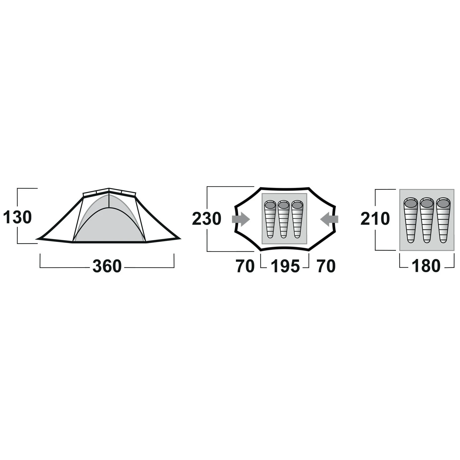Es wird vor allem bei Familienzelten verwendet, bei denen der Schwerpunkt auf nutzbarem Raum und Komfort liegt. Mehr Schlafzimmer bedeuten mehr Privatsphäre und mehr Vielfalt im Innenraum.
