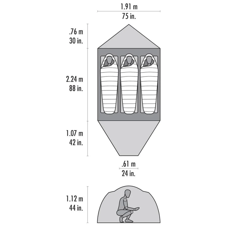 Neue Belüftungsöffnungen verringern die Kondensation und Schneekragen verhindern, dass Schnee unter das Zelt geweht wird. Der größere Grundriss und die erhöhte Kopffreiheit schaffen einen großzügigen Innenraum für 3 Kletterer mit sperriger Winterausrüstung, während ein großer Vorraum mit Schneekragen die Kletterausrüstung schützt.