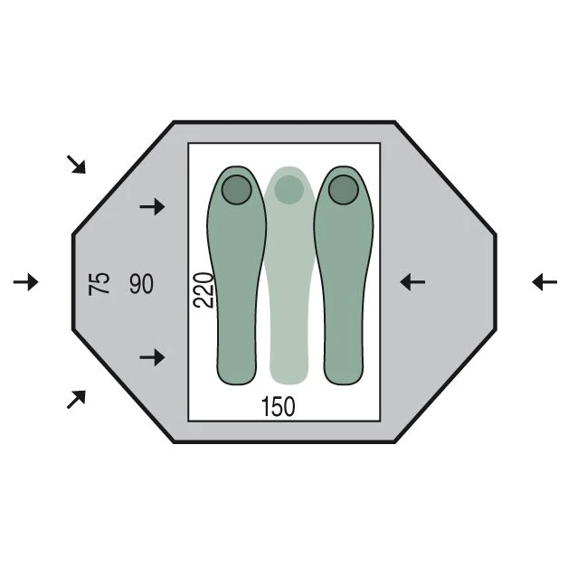 Das Zelt ist doppelwandig und besteht aus einem Innenzelt und einer Außenhülle – einem Überzelt. Das Innenzelt hat einen rechteckigen Grundriss mit zwei Eingängen an den längeren Seiten. Das Außenzelt ist achteckig und verfügt ebenfalls über zwei Eingänge, in denen sich zwei Apsiden befinden, die sich zum Beispiel zur Aufbewahrung von Gepäck eignen.