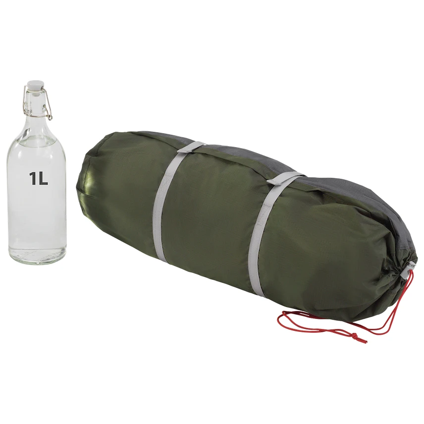Die Struktur selbst besteht aus leichten, langlebigen Aluminiumstangen. Der kuppelförmige Aufbau wird durch einen querverlaufenden Firstbalkenergänzt, so dass zwei Personen bequem nebeneinander im Inneren sitzen können.Dank des Clip-on-Systems lässt sich das Zelt im Handumdrehen aufbauen, denn Überzelt und Schlafbereich lassen sich einfach mit stabilen Kunststoffhaken an der Struktur befestigen.Die Ankerseile werden beim Verpacken aufgerollt und an der Plane befestigt, damit sie sich nicht verwickeln. Die wichtigsten Befestigungspunkte sind mit robusten Schnallen aus einer Legierung ausgestattet. Das Zelt hält einer maximalen Windböengeschwindigkeit von bis zu 108 km/h und einer durchschnittlichen Windgeschwindigkeit von bis zu 102 km/h stand. Das Schlafzimmer ist freistehend.
