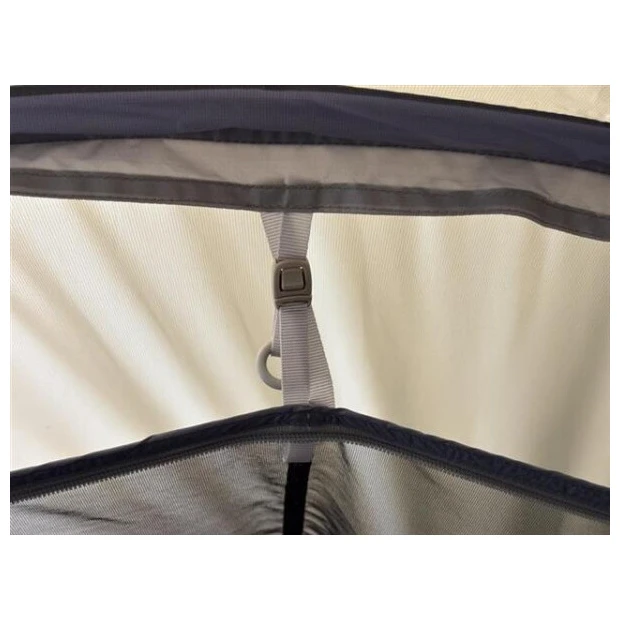 Darüber hinaus verfügt das Zelt über eine gute Luftzirkulationdank des atmungsaktiven Innenzelts, der einstellbaren Belüftungslöcher und eines Zwei-Wege-Reißverschlusses oben an der Tür. Im Inneren befinden sich integrierte Netztaschen zur Aufbewahrung kleiner Gegenstände, eine Möglichkeit zum Aufhängen einer Lampe und eine Wäscheleine zum Trocknen der Kleidung.
