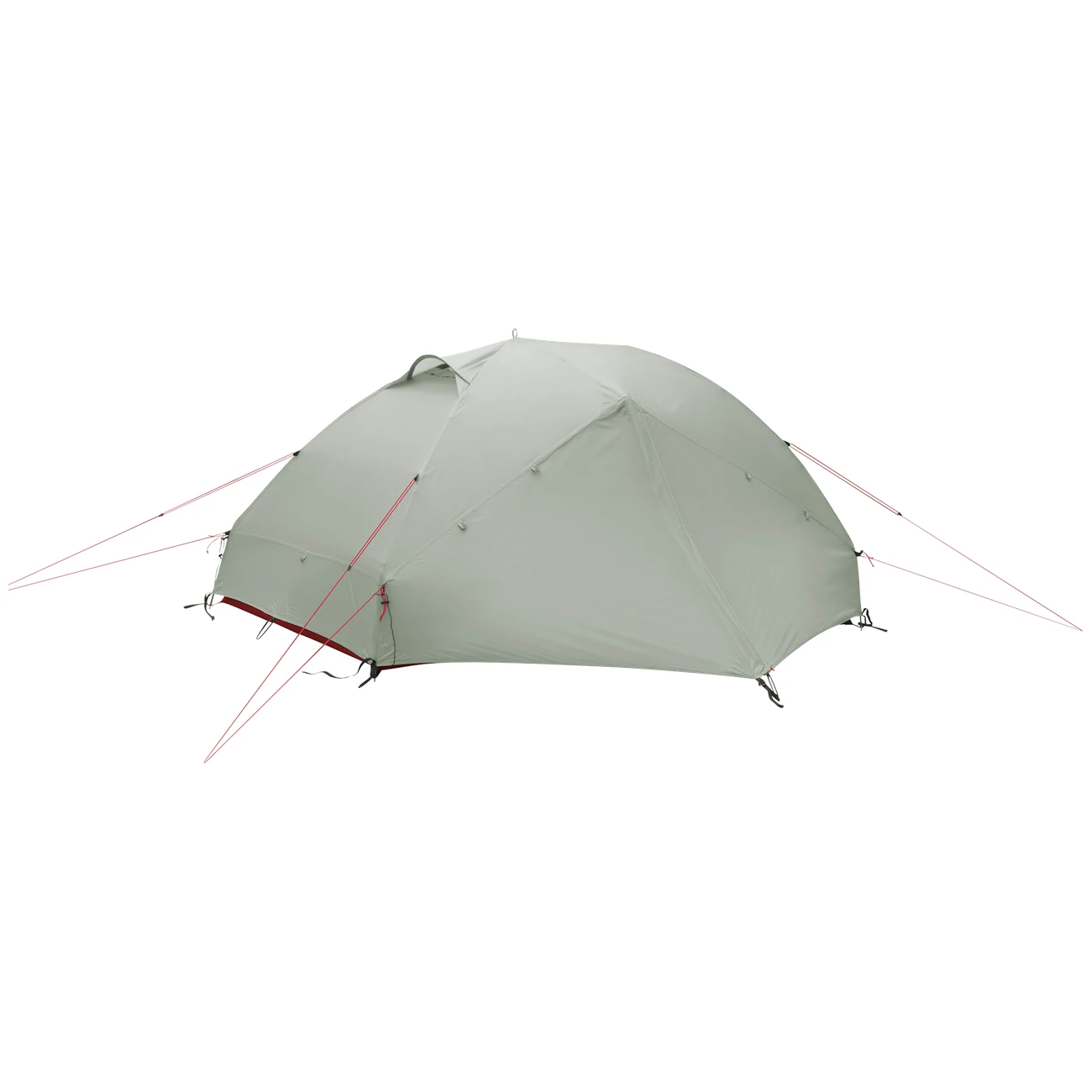 Die Struktur selbst besteht aus ultraleichten, langlebigen Aluminiumstangen, die in flachen Hülsen an der Außenseite des Zelts angebracht sind, was den Windwiderstand verringert. Das Zelt hält Windgeschwindigkeiten von bis zu 86 km/h stand.