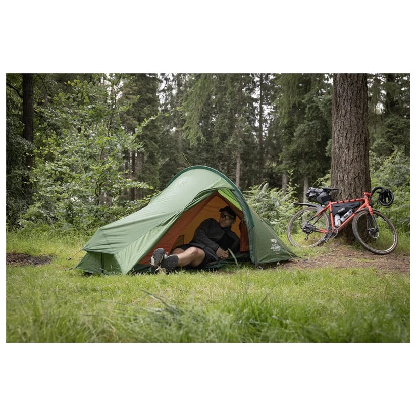 Das Zelt verfügt außerdem über eine gute Luftzirkulationdank des atmungsaktiven Innenzelts, der Belüftungslöcher und des partiellen Moskitonetzes am Eingang des Innenzelts. Dieser O-förmige Eingang erleichtert den Zugang zum Schlafzimmer. Darüber hinaus wirst du die integrierten Netztaschen und eine Tasche mit Kompressionsriemenzu schätzen wissen, die das Packen des Zeltes erleichtert und für kompakte Abmessungen sorgt. Zudem lässt sich die Hülle bequem am Fahrradlenker befestigen.