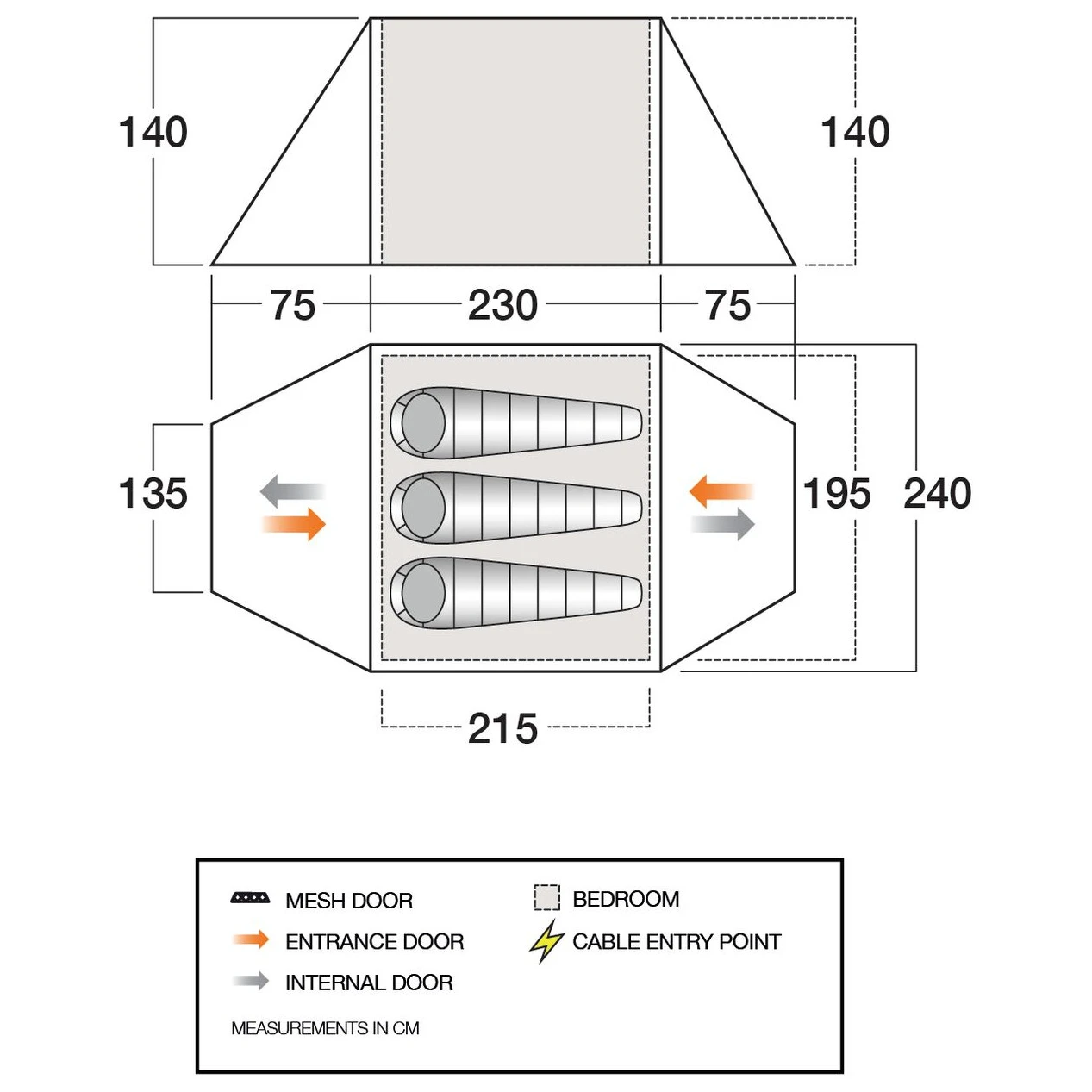 Es wird vor allem bei Familienzelten verwendet, bei denen der Schwerpunkt auf nutzbarem Raum und Komfort liegt. Mehr Schlafzimmer bedeuten mehr Privatsphäre und mehr Vielfalt im Innenraum.