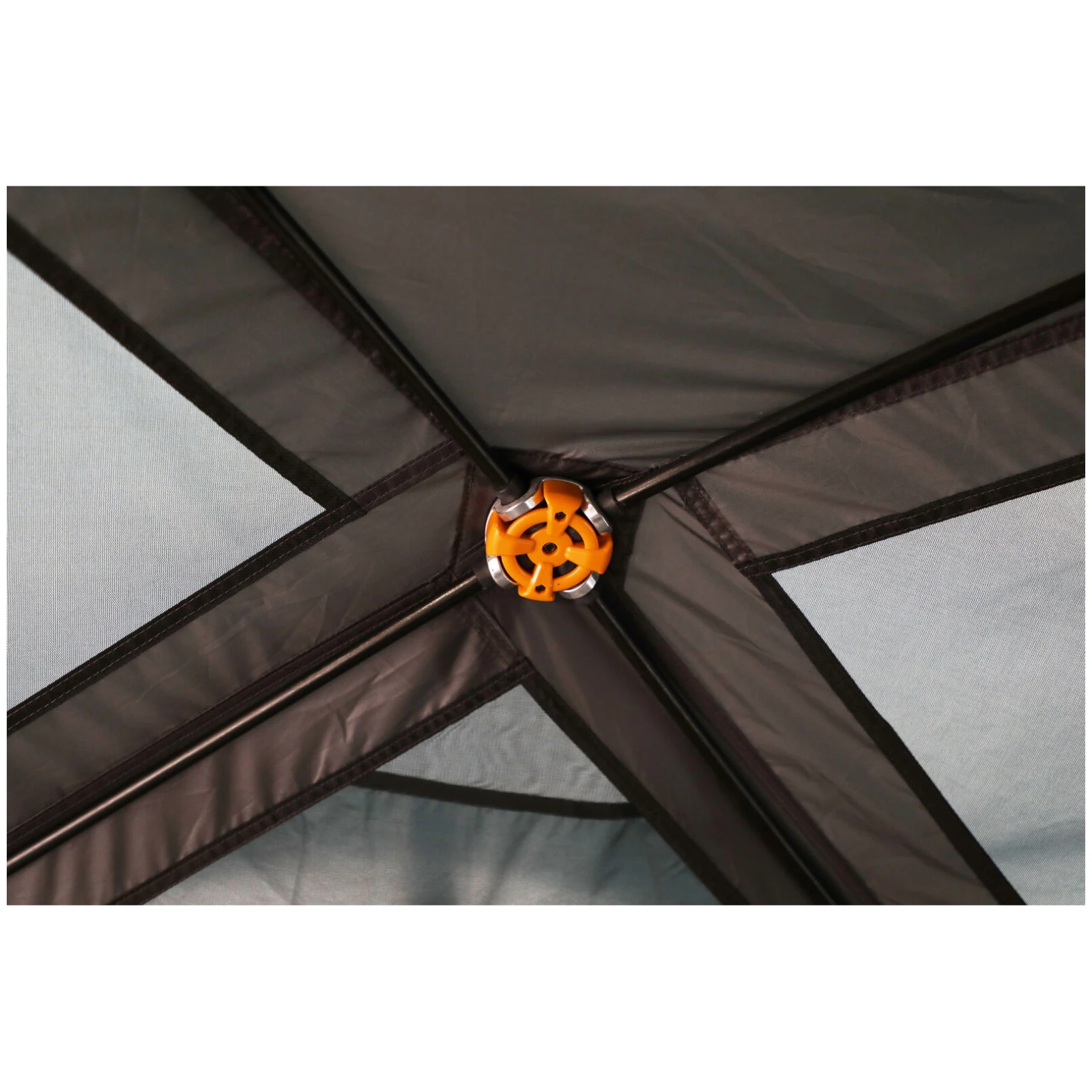 Das Zelt ist mit praktischen Details ausgestattet – Belüftungslöcher für maximale Luftzirkulation, Line-Lok-Spannschnüre für feste Spannung und ein abgedunkelter Schlafraum, der einen guten und ungestörten Schlaf garantiert. Für bequemen Transport und Aufbewahrung ist eine vergrößerte Tasche mit Schultergurt im Lieferumfang enthalten.